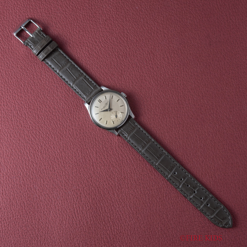 IWC 1945年製 Cal.88 スモールセコンド 手巻きモデルです。Cal.83も人気ですがオールドインターの中でも数が少なく屈指の人気を誇るスモセコ手巻きのCal.88を搭載した一本です。デザインも良く2トーンダイヤルは良い雰囲気です。小傷はありますが大きなダメージはありません。ファイアーキッズオリジナルクロコダイル革ベルトを合わせています。こちらは分解掃除済みです。