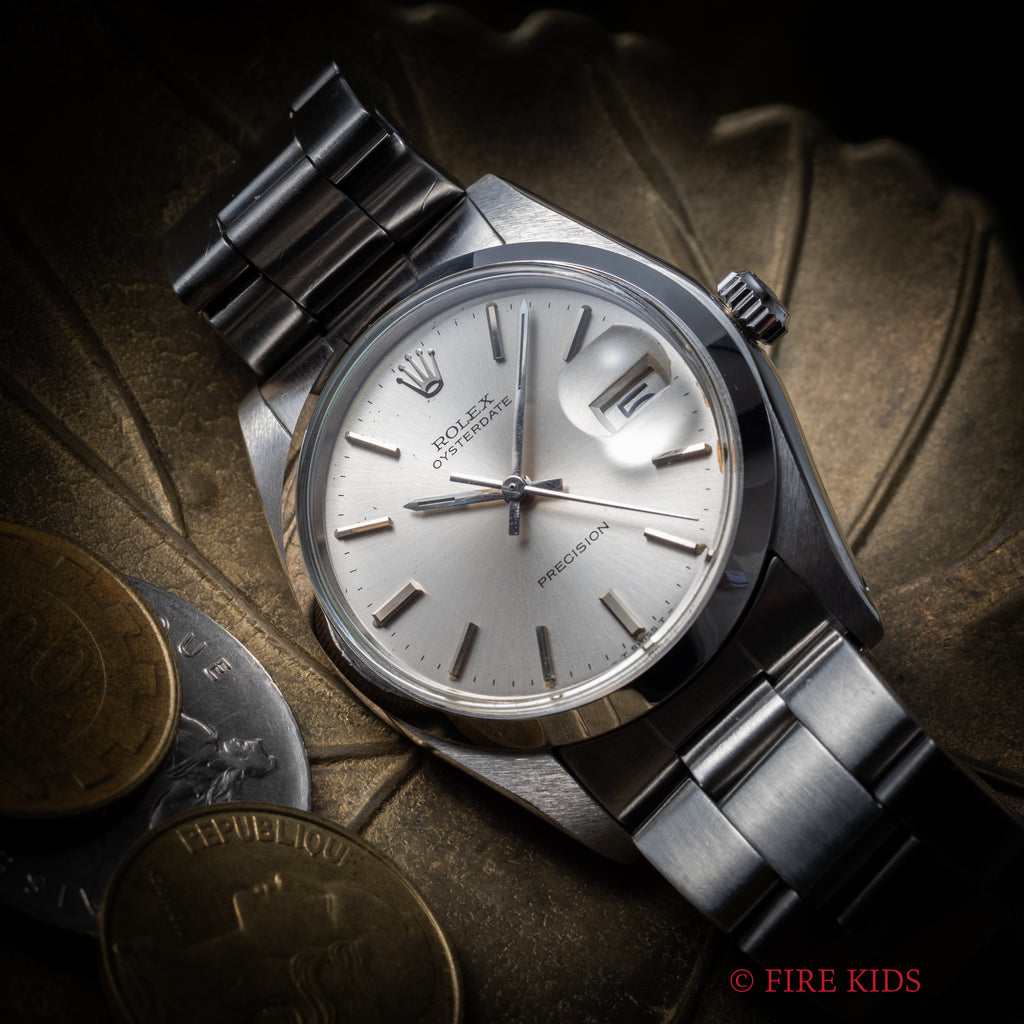 ロレックス オイスターデイト 1978年製 Ref.6694 手巻 シルバーダイヤル 純正オイスターブレスの入荷になります。ロレックス入門機として人気モデルで高年式で状態の良い個体です。ケースは小傷が見られますが大きなダメージはありません。手巻きや針回しの操作はスムースです。ブレスは純正の3連オイスターブレスが取り付けられています。