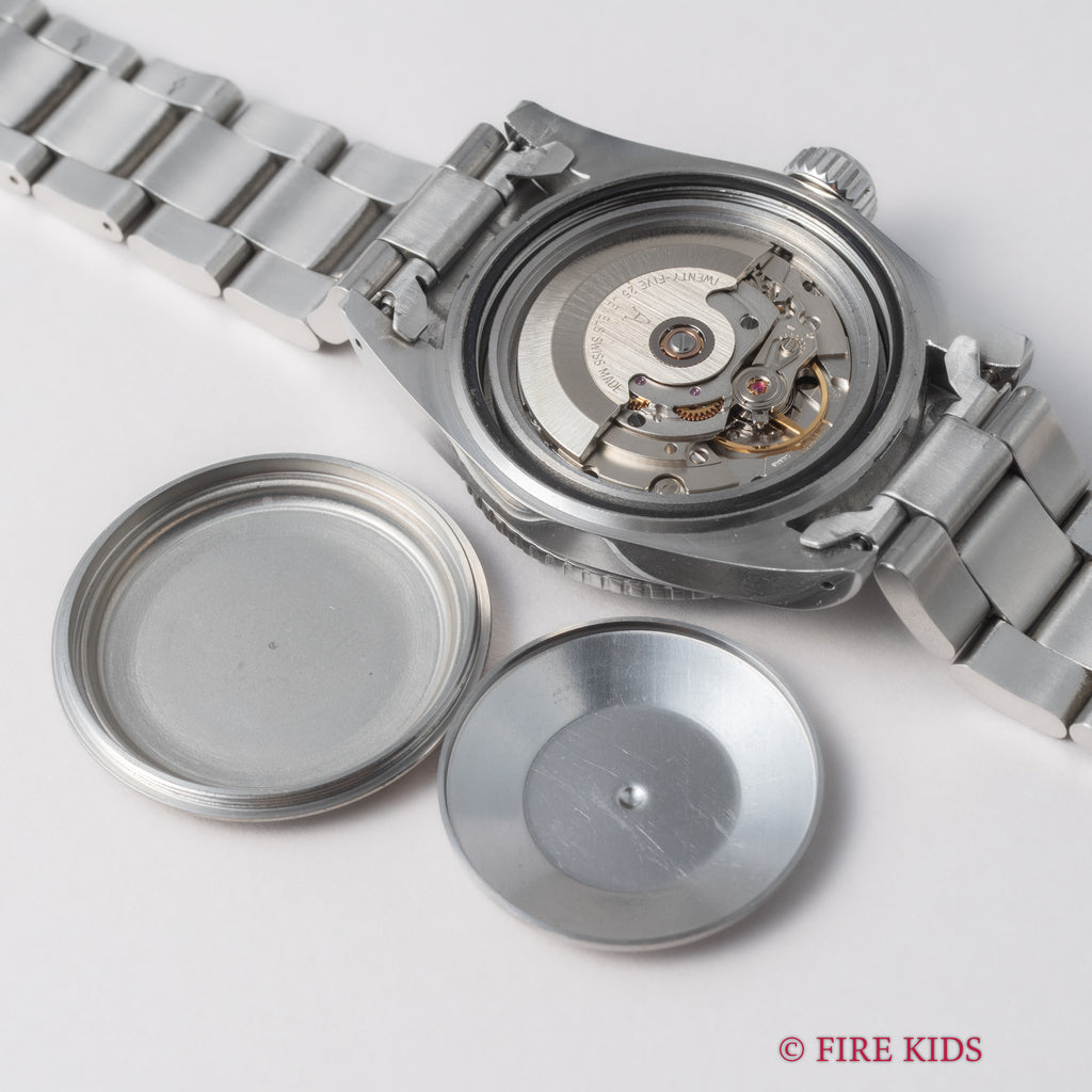 • ヴィンテージ時計の特性上、風防・パッキン・リューズ・バネ棒などの消耗部品は後年メンテナンス過程で交換されている場合がございます。オリジナル性を重視しておりますが、必要に応じて適切な部品にて調整されていますので、よりコレクション性重視のお求めのお客様は事前にご確認ください。