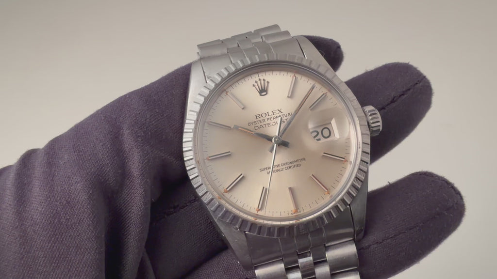 ロレックス デイトジャスト 1978年製 Ref.16030 シルバーダイヤル オールトリチウム 純正ジュビリーブレスの入荷になります。1978年に登場した日付早送り機能を搭載したデイトジャストRef.16030の初期型です。ステンレス製のベゼルが付くRef.1603の後継モデルでプラスチック風防が付く為、モダンな雰囲気でありながらヴィンテージのテイストも楽しめます。ケースは小傷、スレキズはあるものの、オリジナルのシェイプを残した良いコンディションです。ムーブメントは普段使いしやすい日付のクィックチェンジ機能付きのCal.3035を搭載、巻き上げ針回しはスムーズです。ブレスレットは純正のジュビリーブレスレット62510H/FF555が取り付けてあります。こちらの時計は分解掃除済みです。