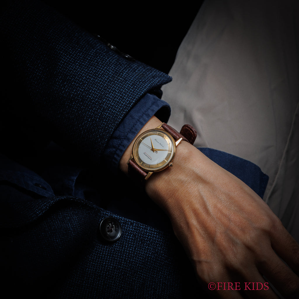 • ヴィンテージ時計の特性上、風防・パッキン・リューズ・バネ棒などの消耗部品は後年メンテナンス過程で交換されている場合がございます。オリジナル性を重視しておりますが、必要に応じて適切な部品にて調整されていますので、よりコレクション性重視のお求めのお客様は事前にご確認ください。