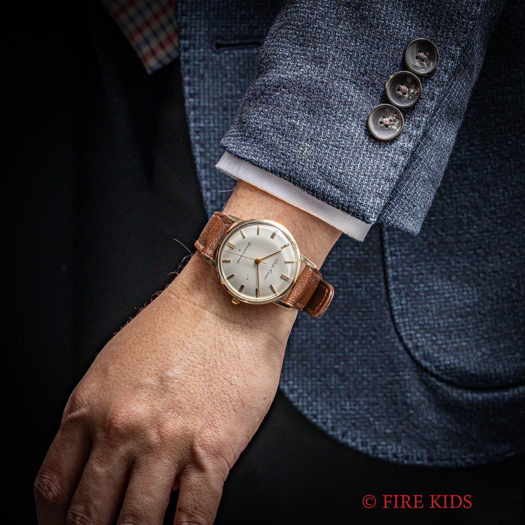 • ヴィンテージ時計の特性上、風防・パッキン・リューズ・バネ棒などの消耗部品は後年メンテナンス過程で交換されている場合がございます。オリジナル性を重視しておりますが、必要に応じて適切な部品にて調整されていますので、よりコレクション性重視のお求めのお客様は事前にご確認ください。