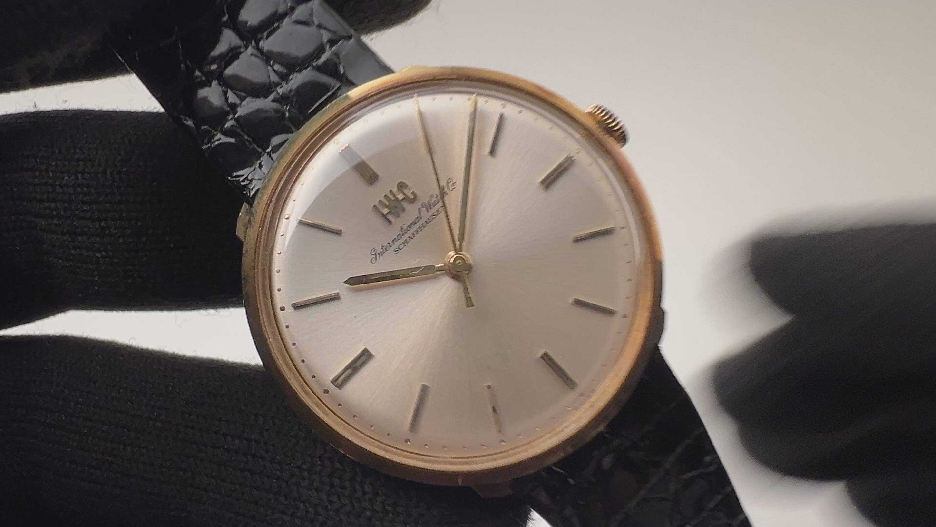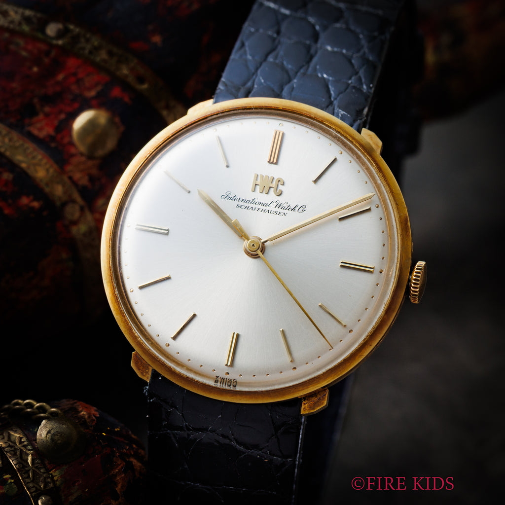IWC 14金無垢 1970年製 手巻 Cal.403  純正GF尾錠付きです。シャンパンゴールドの文字盤と金無垢の色味が素晴らしい時計です。文字盤のパールドットもこの年代には見かけないしっかりとしたIWCらしい造り込みです。文字盤の若干のダメージはありますが良い状態です。ベルトは社外の革ベルトに純正尾錠が取り付けられています。