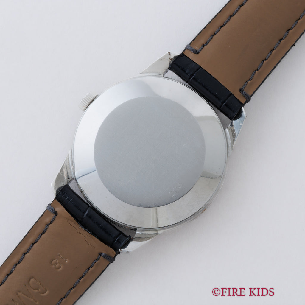 • ヴィンテージ時計の特性上、風防・パッキン・リューズ・バネ棒などの消耗部品は後年メンテナンス過程で交換されている場合がございます。オリジナル性を重視しておりますが、必要に応じて適切な部品にて調整されていますので、よりコレクション性重視のお求めのお客様は事前にご確認ください。