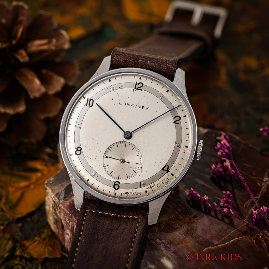 ロンジン 37㎜ビッグケース 1947年製 スモールセコンド手巻 Cal.12.68Z 飛びアラビアブルズアイダイヤル