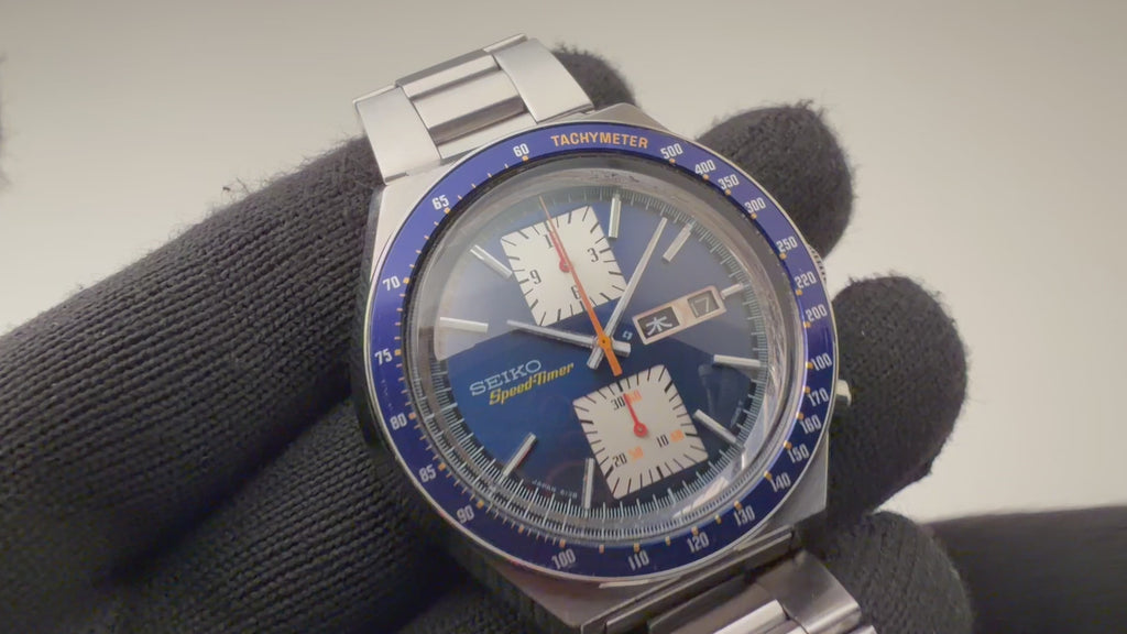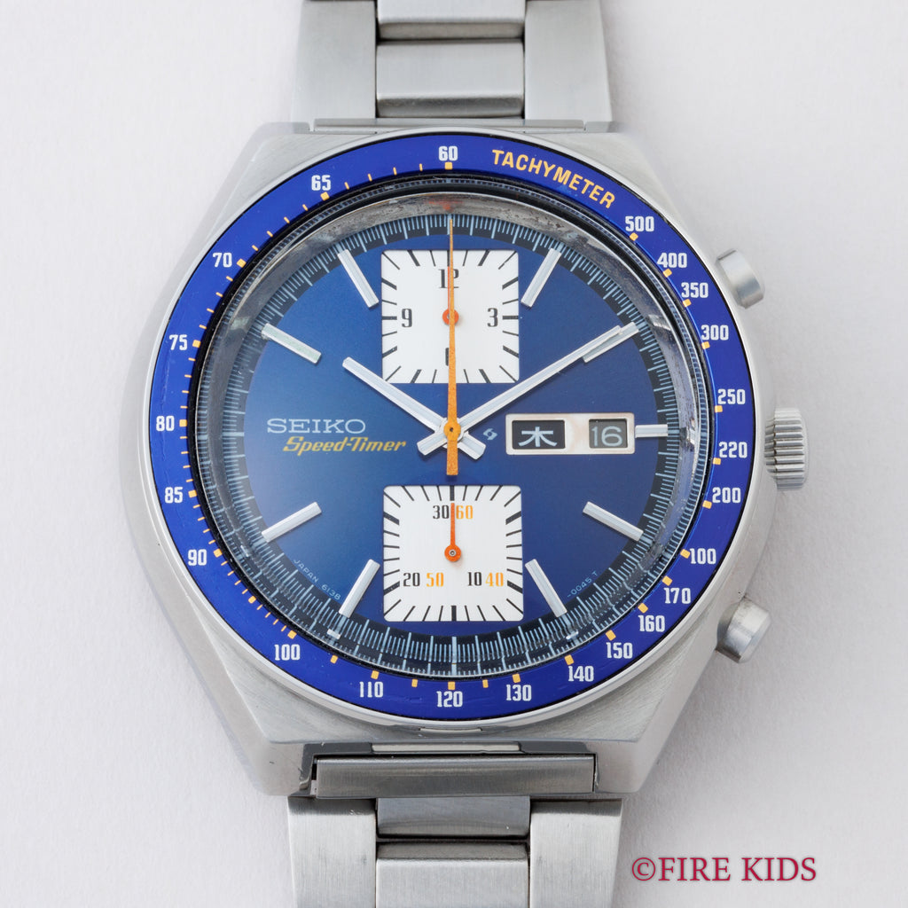 セイコー 角目 自動巻クロノグラフ 1976年製 Ref.6138-0030 ブルーダイヤル 純正ブレス付き