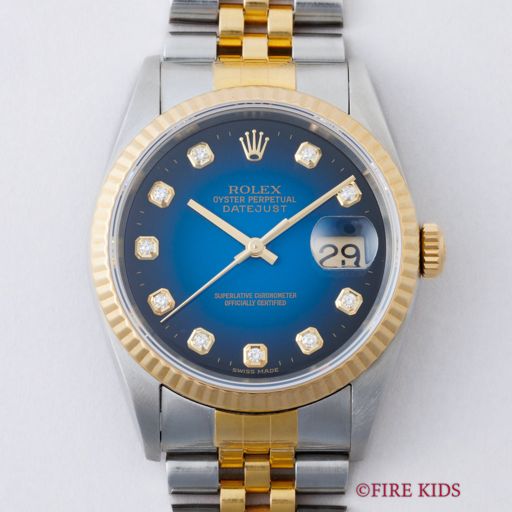ロレックス デイトジャスト Ref.16233G 10PDブルーグラデーションダイヤル 2000年製 ギャラ、タグ付き