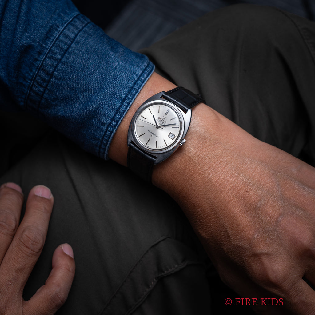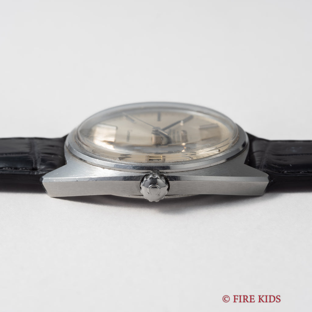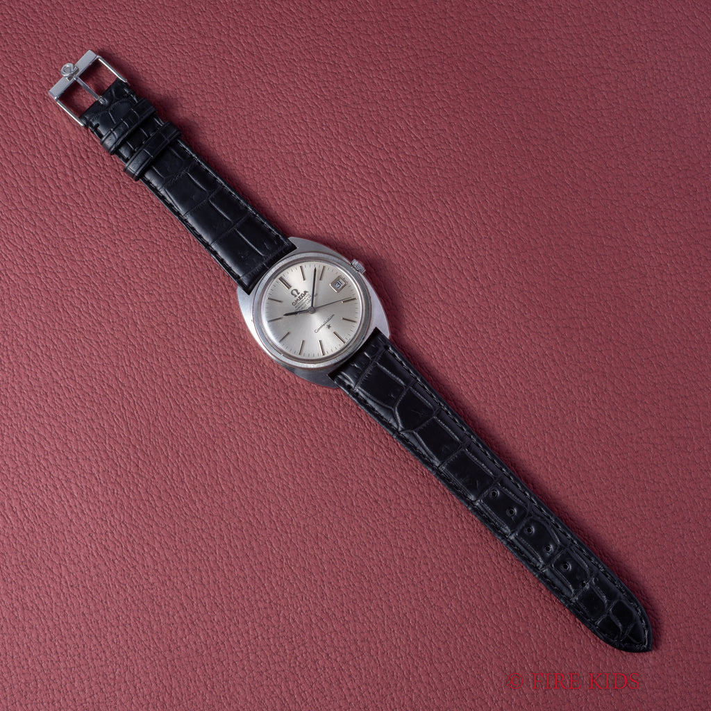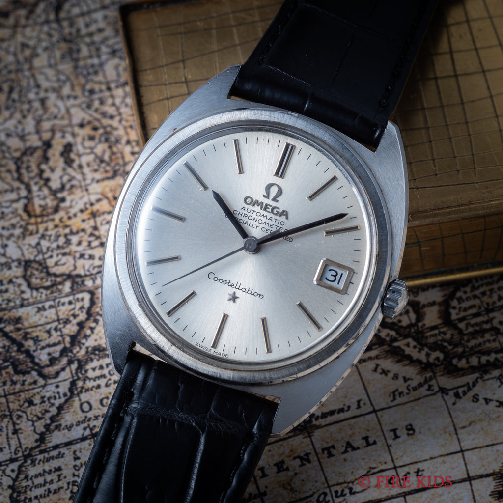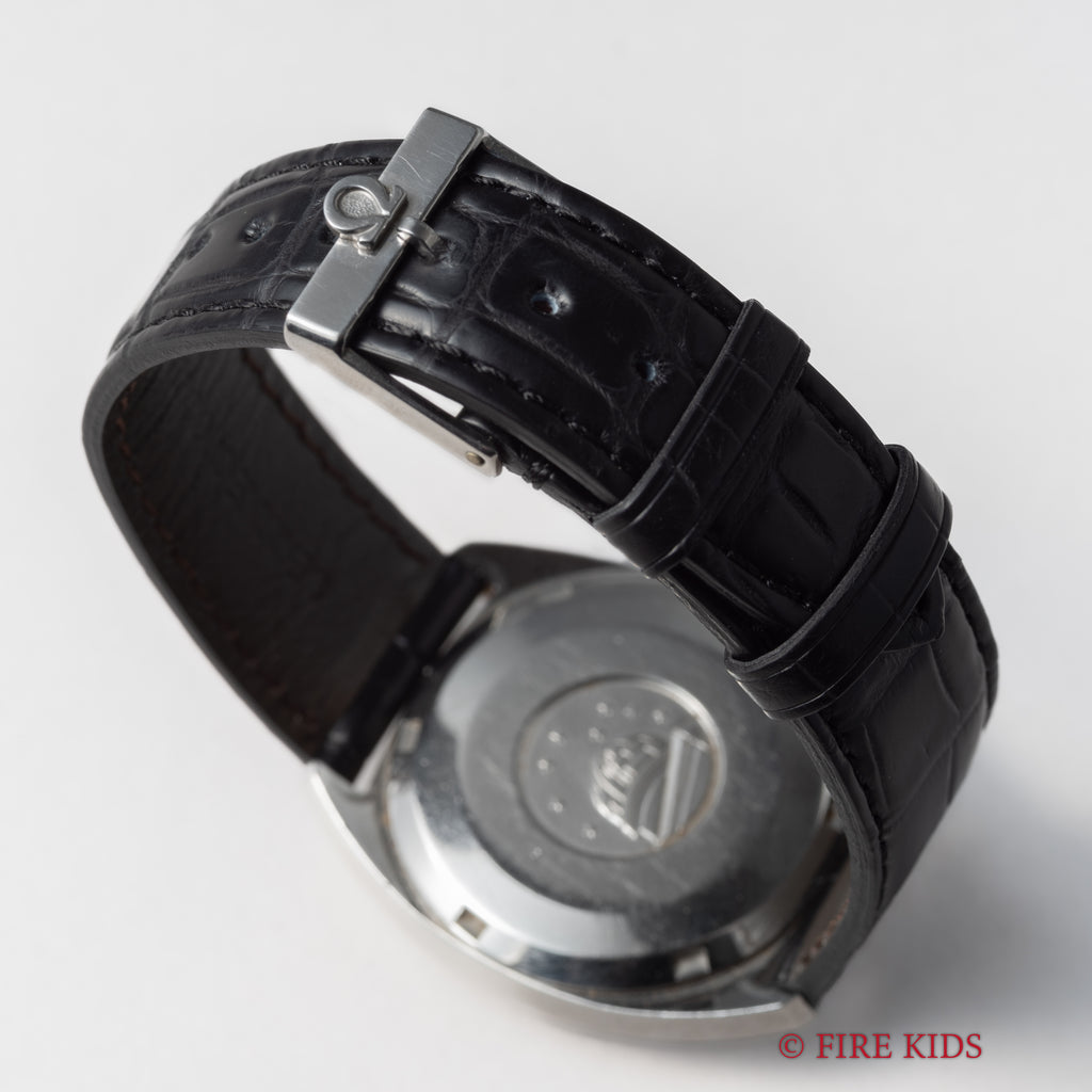 オメガ コンステレーション 1969年製 Ref.168.017 ジェンタ クロノメーター自動巻 Cal.564 純正尾錠付の入荷になります。世界一有名な時計デザイナーとして知られるジェラルド・ジェンタ氏の代表作の一つです。ブラックペイントが施された針とインデックスは視認性も良いです。ムーブメントはクロノメーターのCal.564を搭載、リューズを2段階でカレンダーを早送りできます。手巻きや針回し操作もスムーズです。ベルトはファイアーキッズオリジナルのクロコダイル革ベルトに純正尾錠が取り付けてあります。