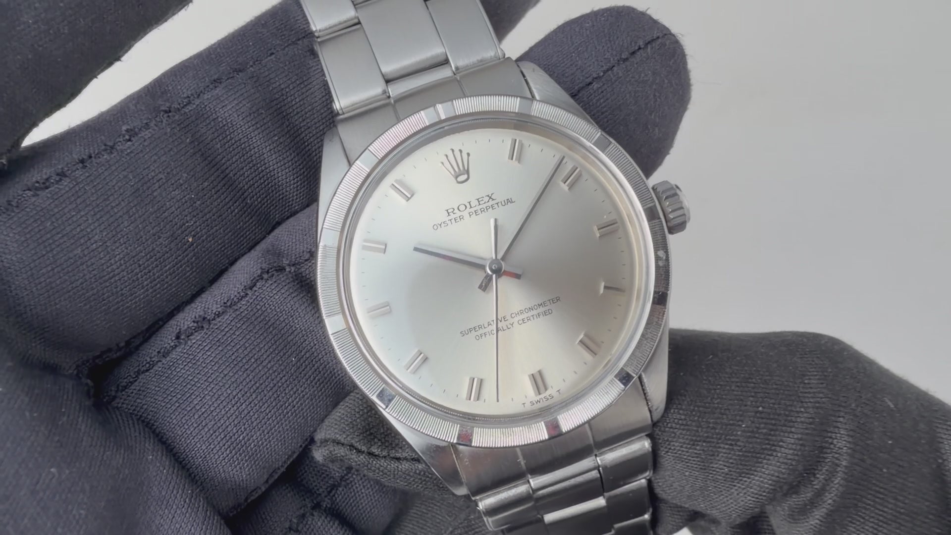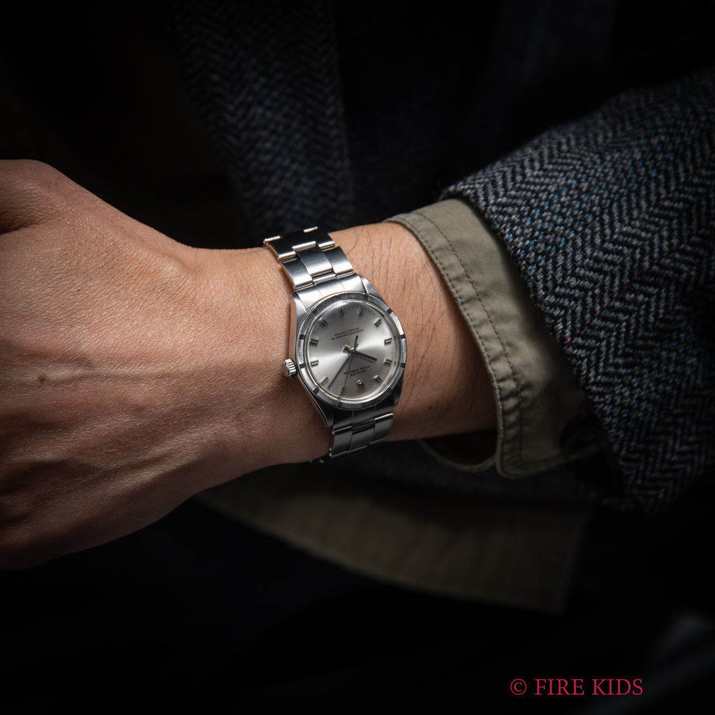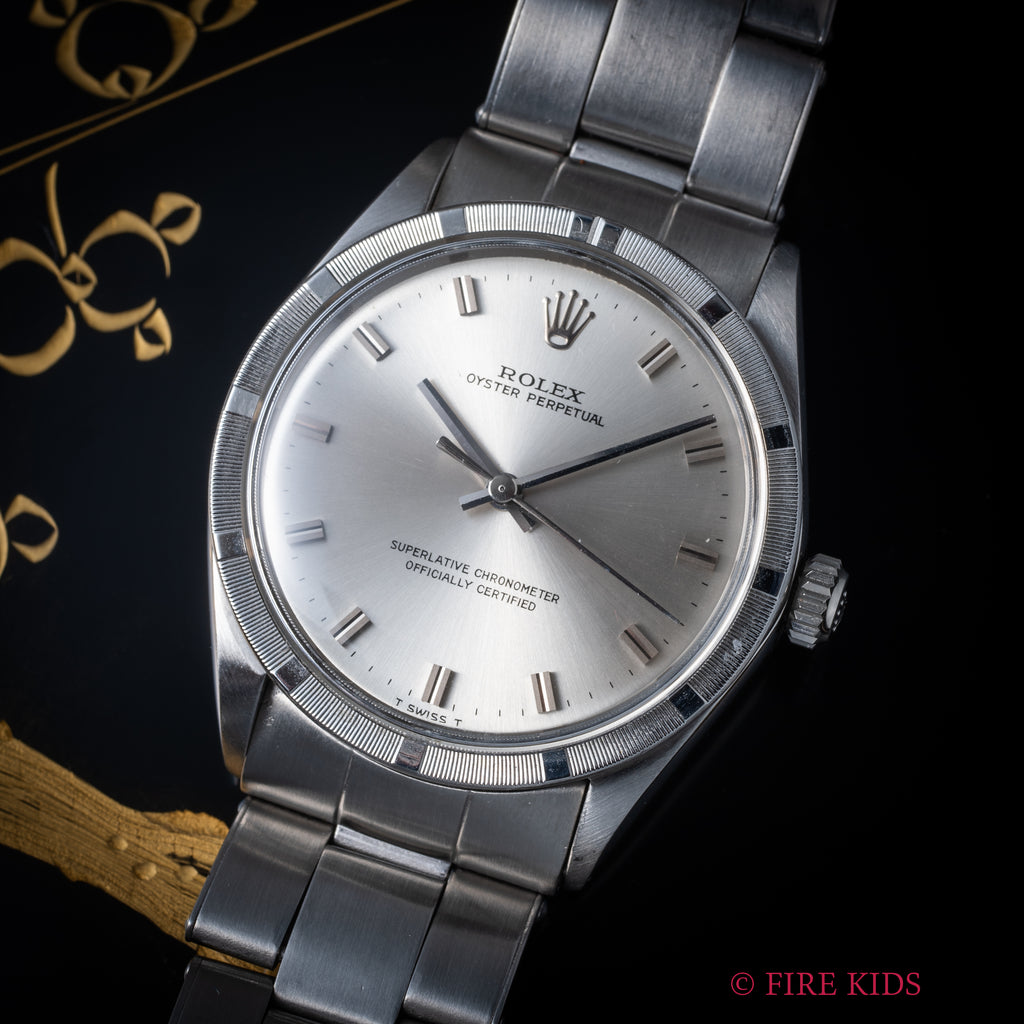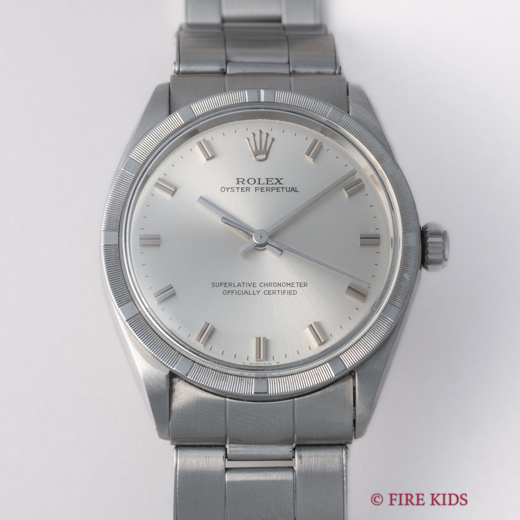 ロレックス オイスターパーペチュアル エンジンターンドベゼル 1968年製 Ref.1007 ショートインデックス 純正リベットブレス