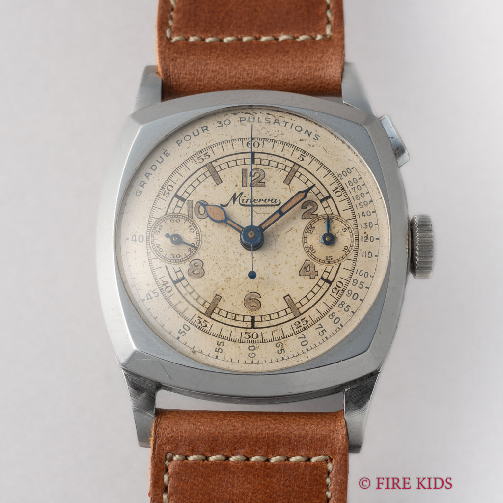 ミネルバ 1940年代製 ドクターズウオッチ Cal.13-20CH ワンプッシュクロノ ステンレスクッションケース