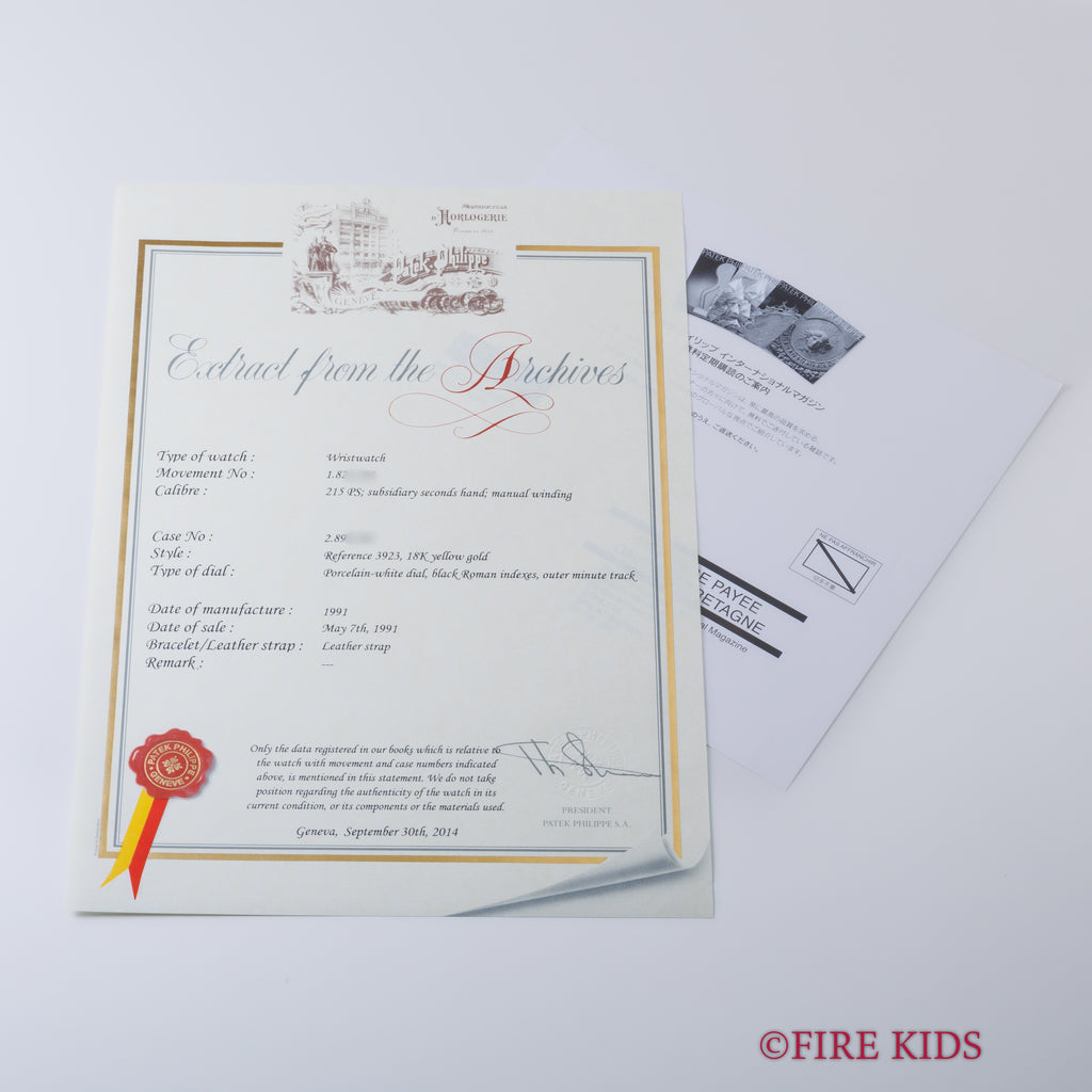 パテック・フィリップ カラトラバ 1991年製 Ref.3923 Cal.215 純正18金尾錠 アーカイブ付き