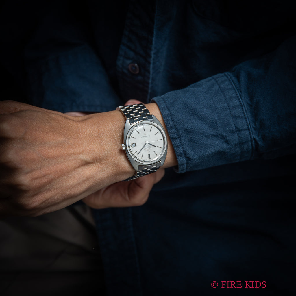 1971年製のオメガ コンステレーション Ref.ST168017SP ジェンタ リネンダイヤル ブレス付きです。パテック、AP等々で名作を生みだし世界的時計デザイナーと言われるジェラルド・ジェンタ氏が1960年代にデザインしたモデルです。改めて見てもこのCラインのケースデザインは秀逸でカッコいいです。文字盤はシルバーのリネンダイヤルで目立つ劣化も無くキレイな状態です。ケースは小キズや使用感がある状態です。ムーブメントはクロノメーターのCal.564を搭載、リュウズを2段階引っ張ることでカレンダーを早送りできます。手巻きや針回し操作もスムースです。ベルトは柔らかい着け心地の純正5連ステンレスベルトが取り付けてあります。