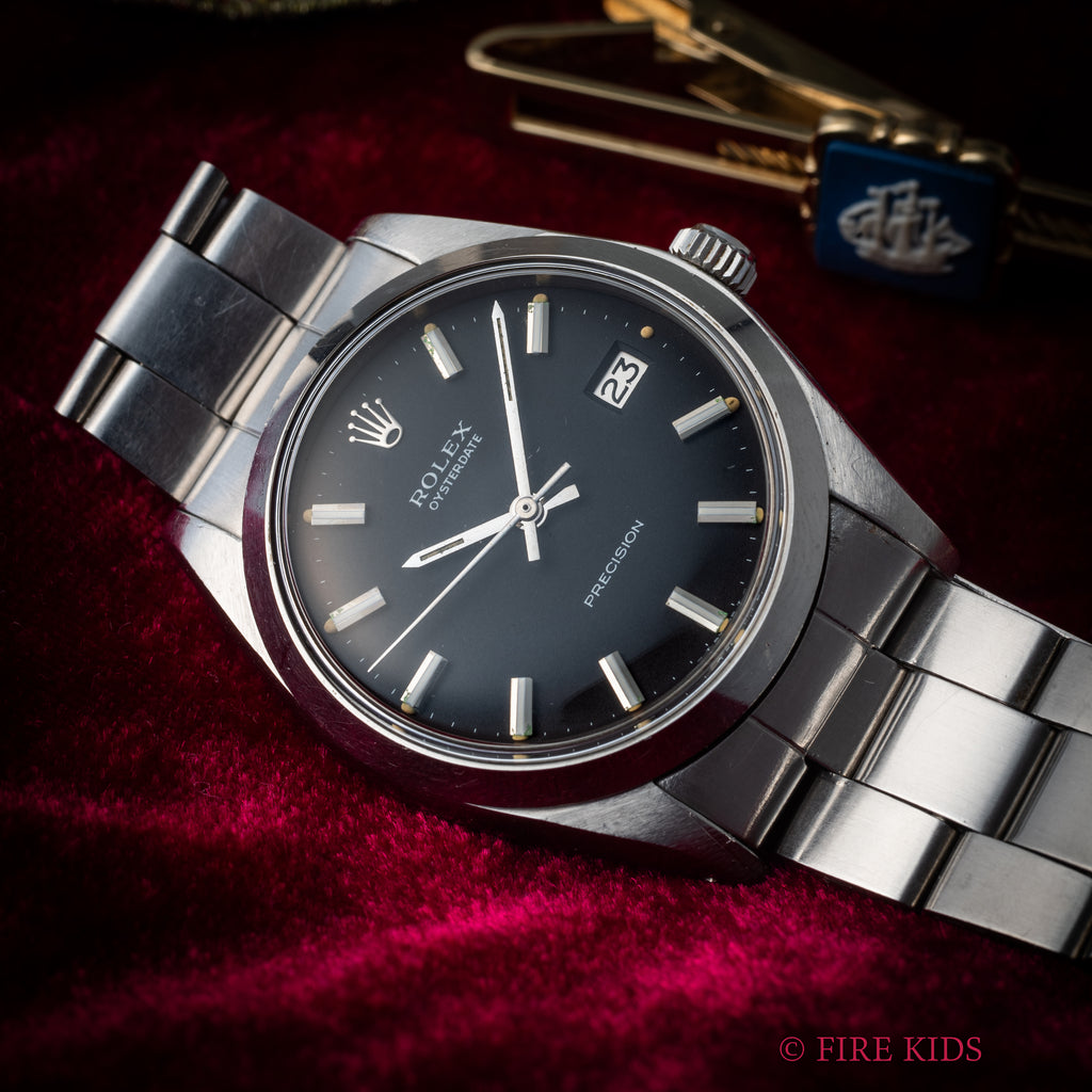 ロレックス オイスターデイト 1971年製 Ref.6694 手巻 ブラックダイヤル  ドーム風防 3連オイスターブレスの入荷になります。ロングセラーのRef.6694の中でも比較的見る機会の少ない人気のマットブラックダイヤルが魅力的な一本です。文字盤やケースには多少の経年や小傷はありますが、大きなダメージはありません。風防はサイクロップレンズ無しのドーム風防が取り付けられています。手巻きや針回しはスムーズです。ベルトは純正巻きブレスが付いています。