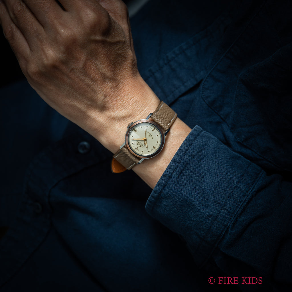 • ヴィンテージ時計の特性上、風防・パッキン・リューズ・バネ棒などの消耗部品は後年メンテナンス過程で交換されている場合がございます。オリジナル性を重視しておりますが、必要に応じて適切な部品にて調整されていますので、よりコレクション性重視のお求めのお客様は事前にご確認ください。