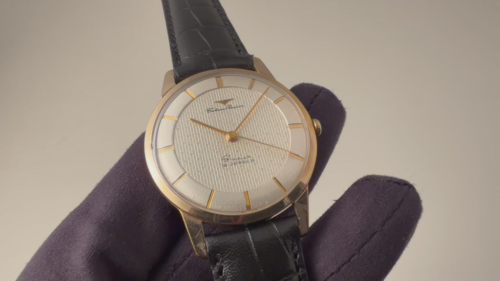 • ヴィンテージ時計の特性上、風防・パッキン・リューズ・バネ棒などの消耗部品は後年メンテナンス過程で交換されている場合がございます。オリジナル性を重視しておりますが、必要に応じて適切な部品にて調整されていますので、よりコレクション性重視のお求めのお客様は事前にご確認ください。