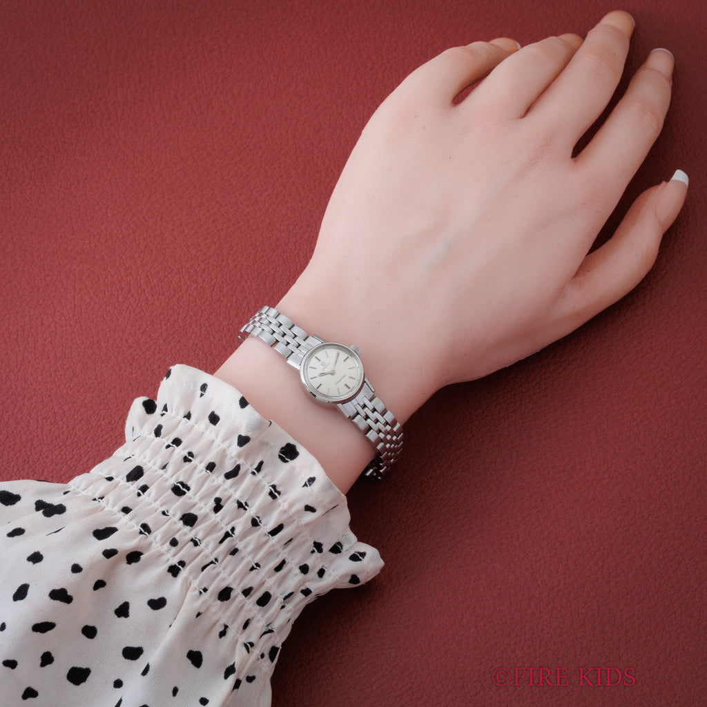 オメガ レディマチック 1965年製 自動巻 cal.661 純正ステンレスブレスの入荷になります。幅約18.5㎜(リューズ別)のコンパクトサイズながらも自動巻モデルです。裏蓋がシーマスターの物でスペックは防水仕様(当時)になっています。文字盤はシミ等無く綺麗です。ケースは小傷が見られますが大きなダメージはありません。手巻きや針回しの操作はスムースです。ベルトは純正のステンレスブレスが取り付けられています。こちらの時計は分解掃除済みです。