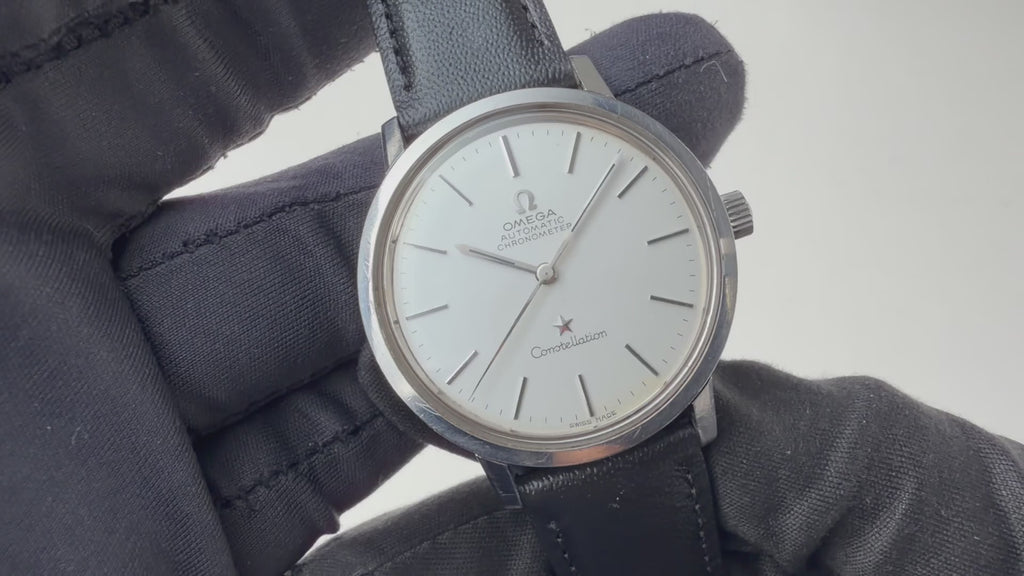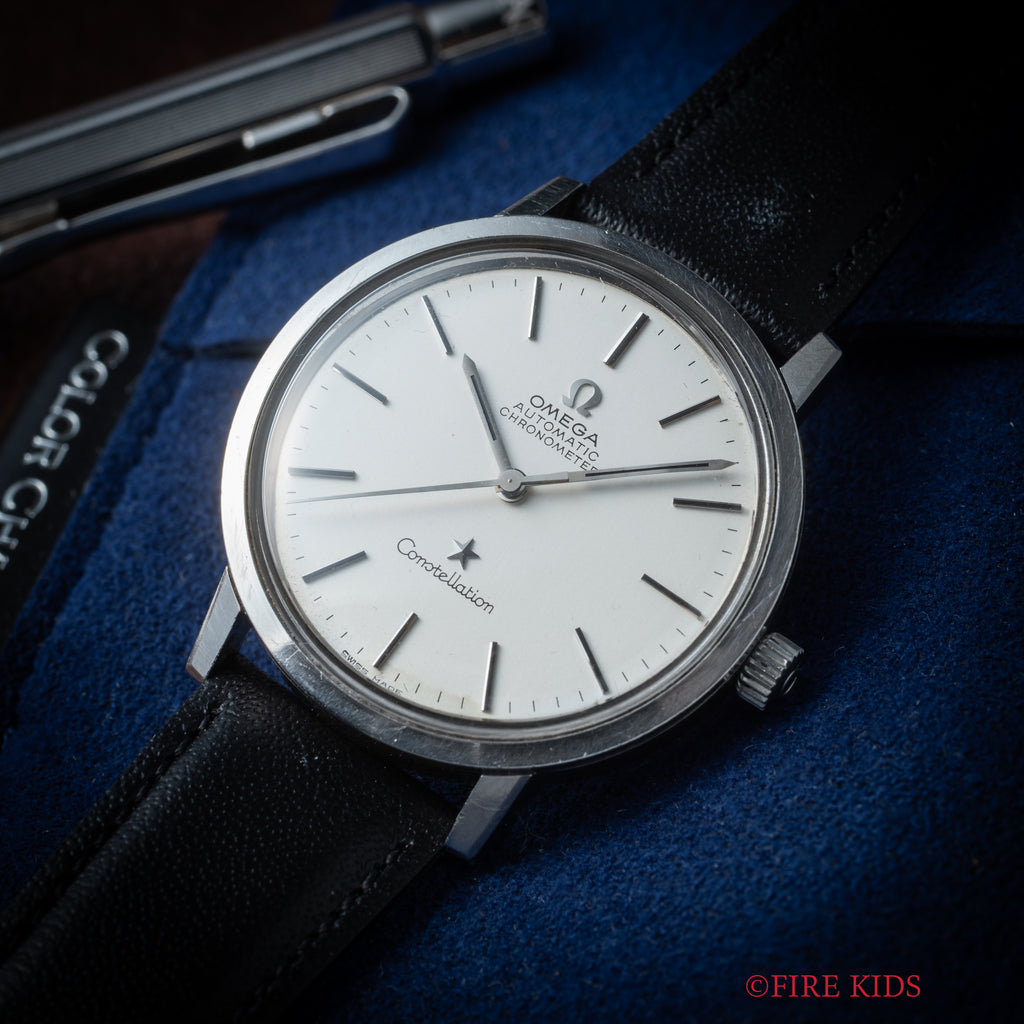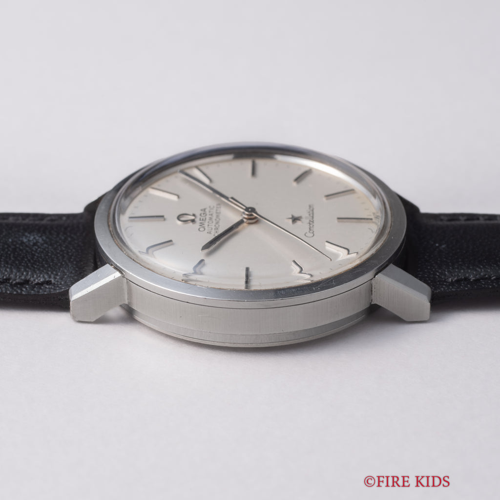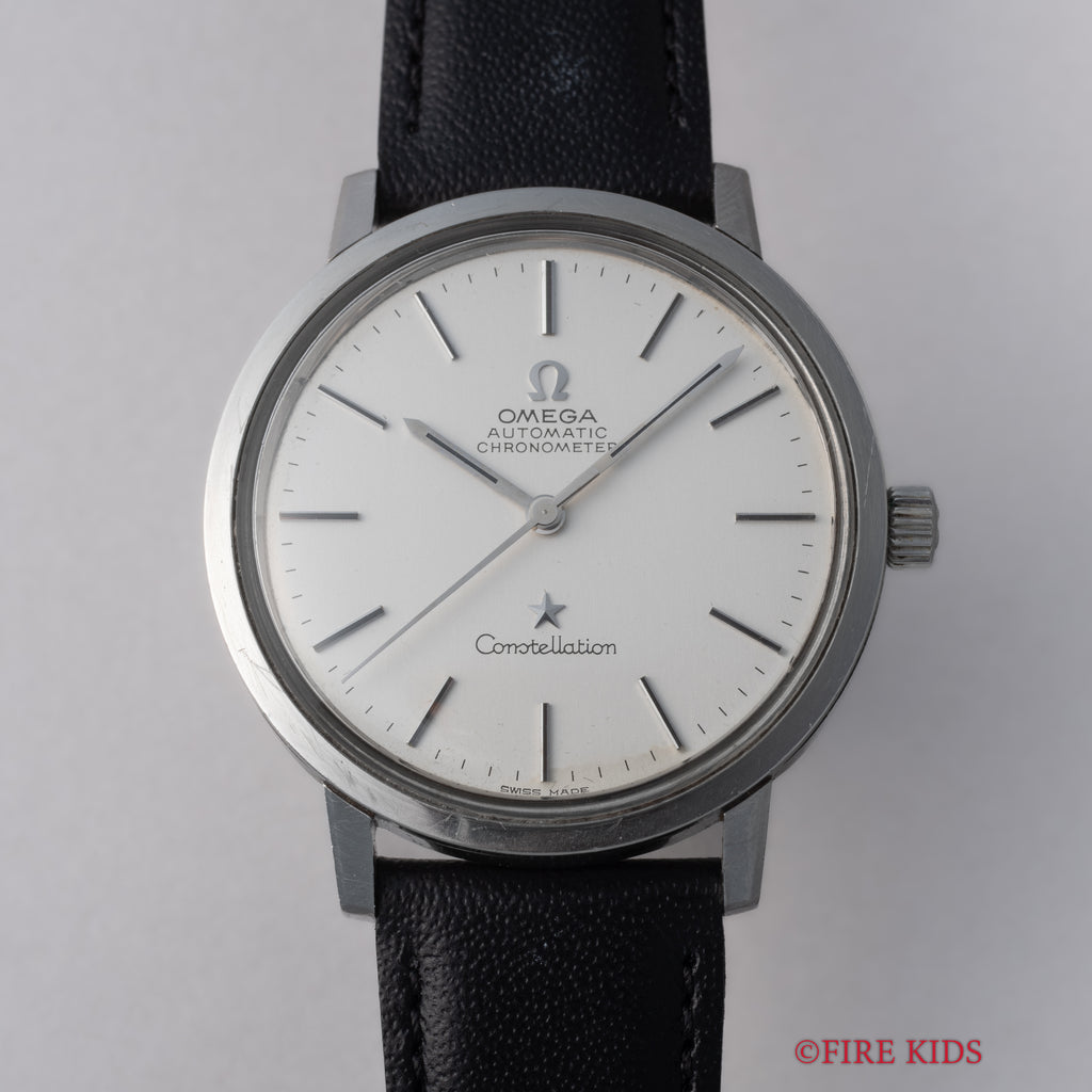 オメガ コンステレーション 自動巻きクロノメーター 1972年製 Ref.ST167.754 Cal.1011が入荷しました。オメガの最高級ラインコンステレーション、ステンレス製のラウンドケースとシルバー文字盤で飽きの来ない組み合わせです。ヘアラインの入っていないシンプルな文字盤だからこそ、オメガのロゴとコンステレーションの星マークが強調されるデザインとなっています。ムーブメントは自動巻きのCal.1011を搭載。文字盤に一部シミがありますが雰囲気を損なうものではありません。またケースは小傷はございますが大きなダメージはございません。ベルトは社外の革ベルトが取り付けてあります。