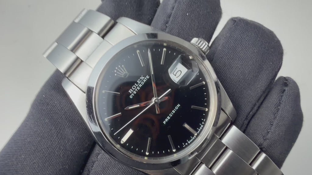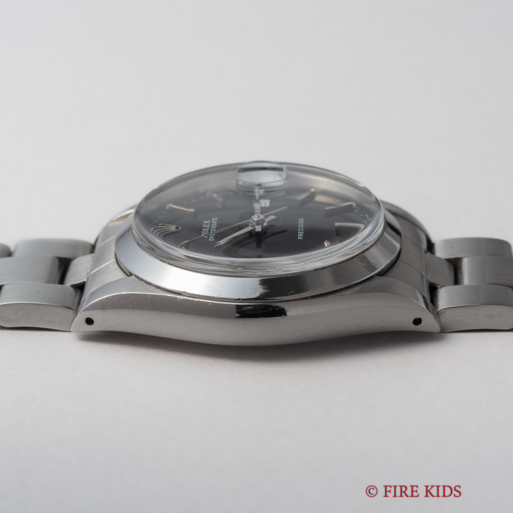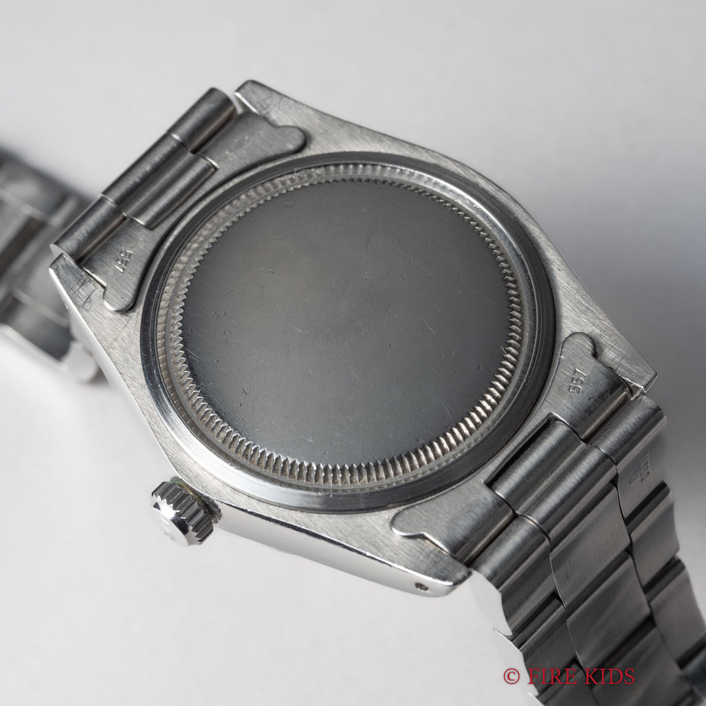 ロレックス Ref.6694 1986年製 サービスブラックダイヤルです。デイト付き手巻きのスタンダードな一本です。文字盤は後年のサービスダイヤルで大きなダメージはありません。ケースは小傷程度です。純正オイスターブレス付きです。