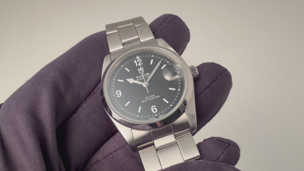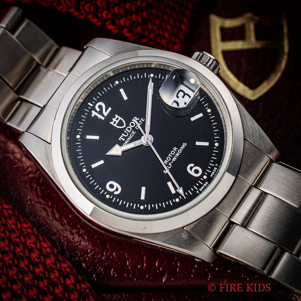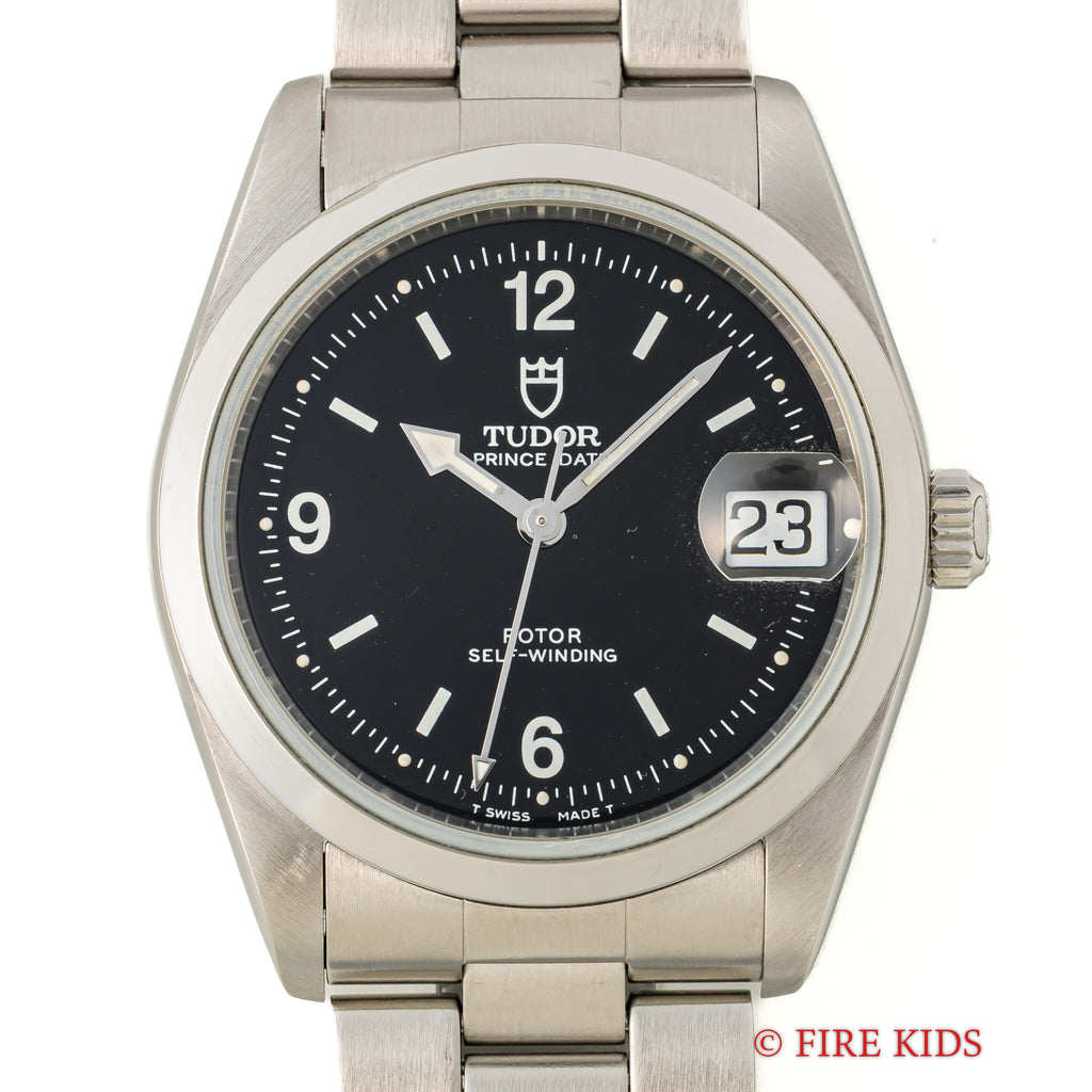 チューダー プリンスデイト 1998年製 ブラックアラビアダイヤル 王冠リューズ 純正ステンレスブレス 箱、ギャラ付き