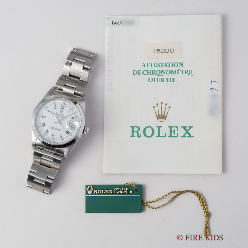 ロレックス 1989~1990年製 ホワイトローマンダイヤル オイスターパーペチュアルデイト Ref.15200 ギャラ、タグ付き