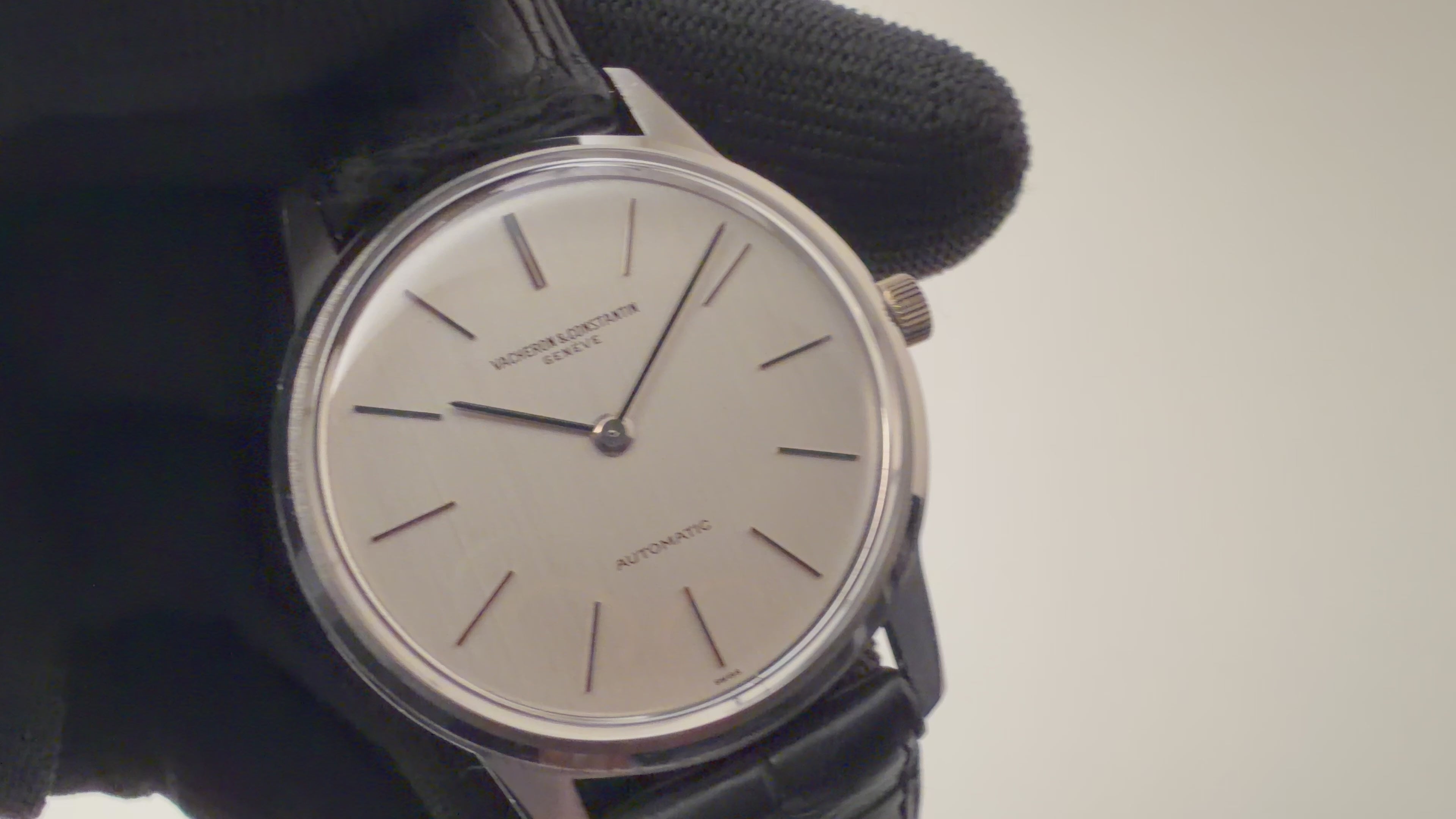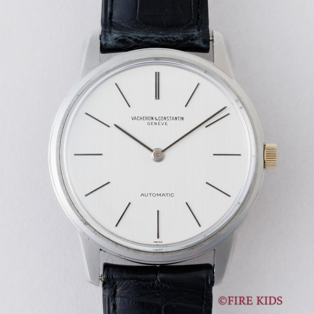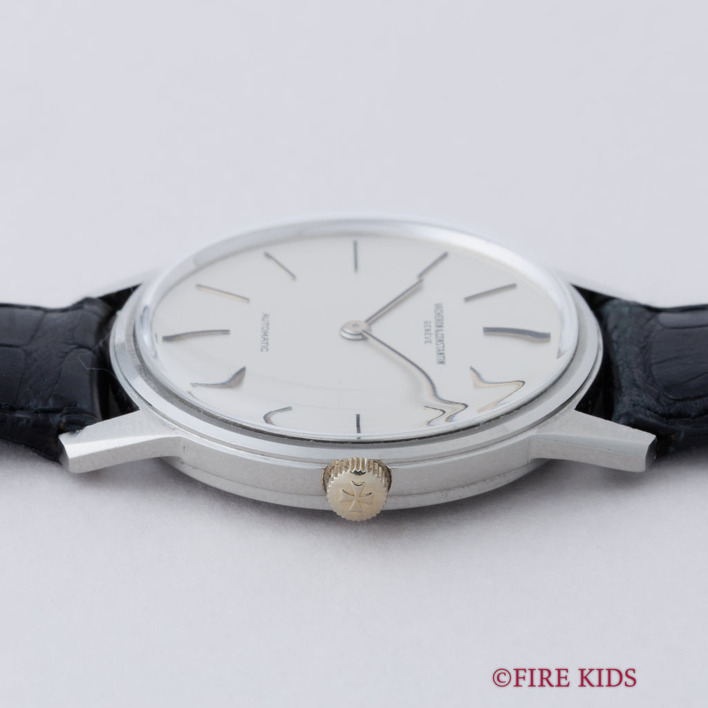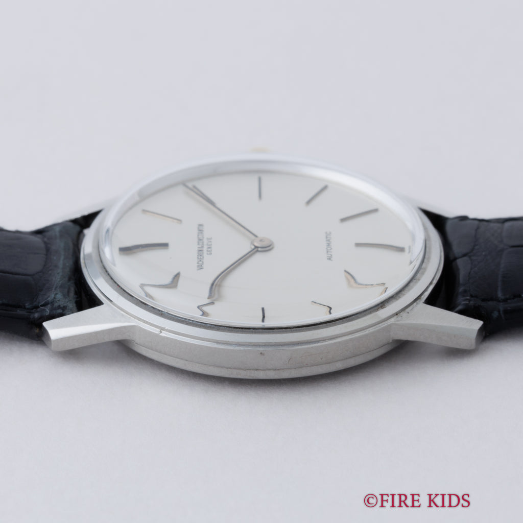 ヴァシュロン・コンスタンタン ラウンドケース 1970年代製 自動巻き Ref.7592 Cal.K1120 ジュネーブシールの入荷になります。三大雲上メーカーのひとつヴァシュロンコンスタンタンの薄型自動巻きモデルです。厚さ約7mmと自動巻きでは非常に薄く造られています。文字盤はシミ等無く綺麗です。ケースは小傷が見られますが大きなダメージはありません。ムーブメントはノーチラスやロイヤルオーク同様ジャガー・ルクルトのCal. 920をベースにしたCal. K1120で21金ローターを採用しています。純正クロコダイル革ベルトを合わせています。