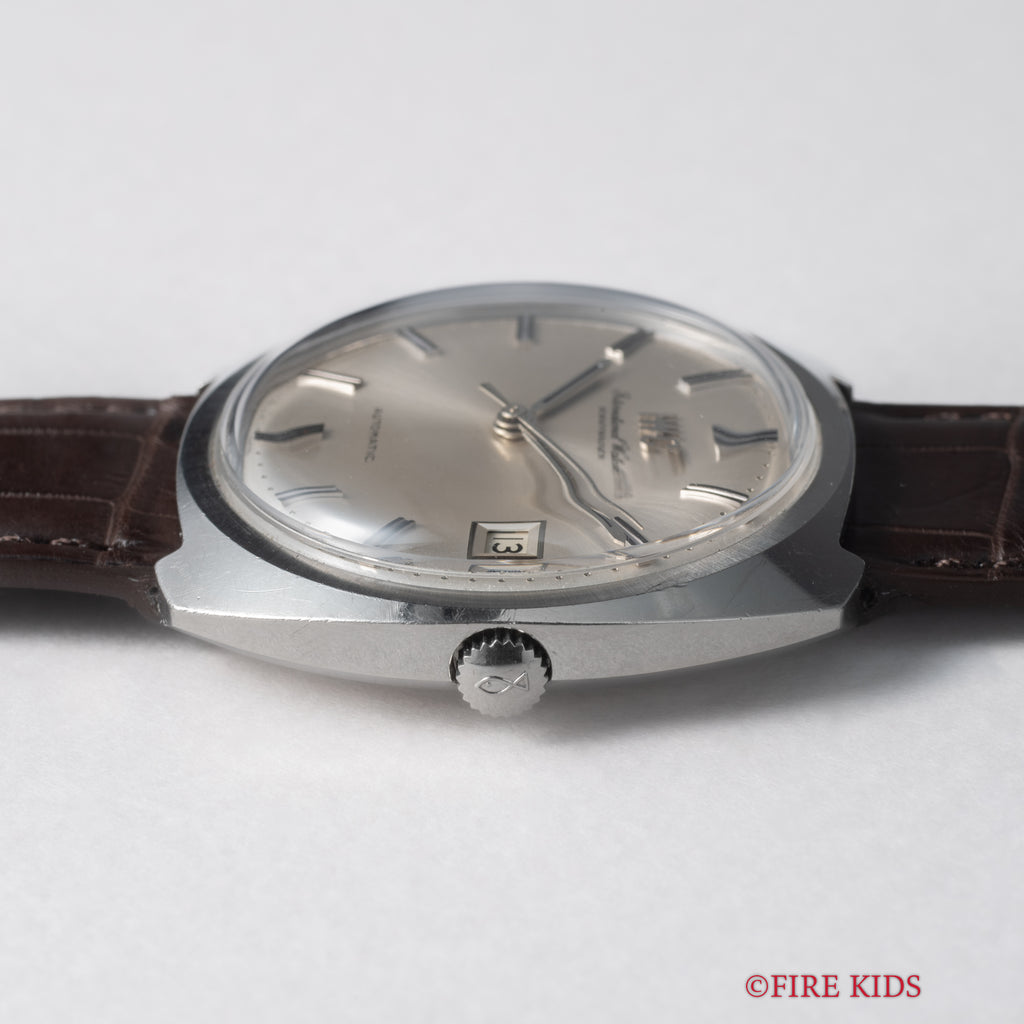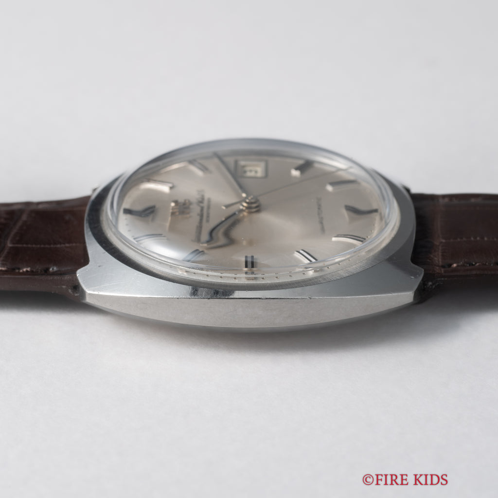 IWC 1967年製 Ref.814A クッションケース ペラトン式自動巻き Cal.8541搭載です。IWCロゴと筆記体ロゴの両方入る人気仕様のダイヤルは肉眼で綺麗なコンディションを維持しています。コロンとしたクッションケースも小傷はありますが大きなダメージ無く良好なコンディションです。ペラトン式自動巻きのCal.8541を搭載し、手巻きや針回しはスムーズです。ファイアーキッズオリジナルのクロコダイル革ベルトを合わせています。