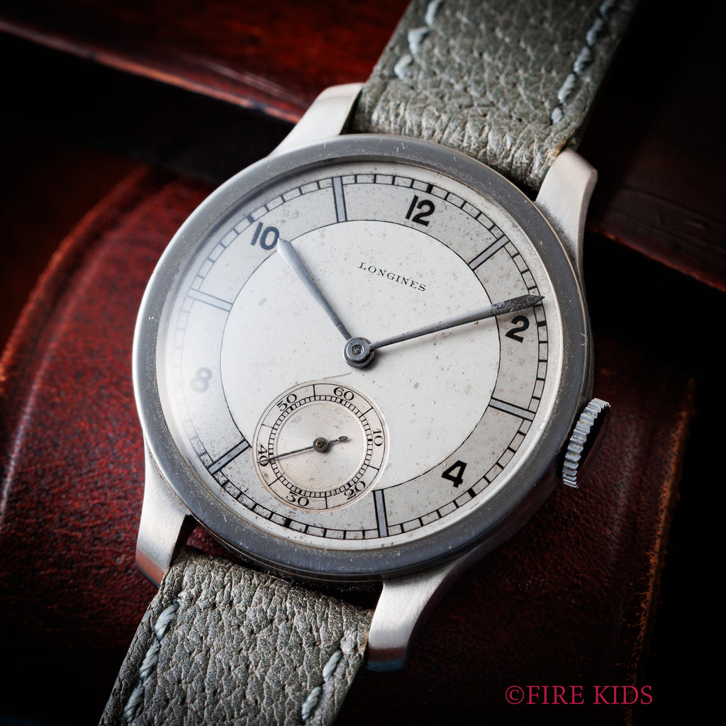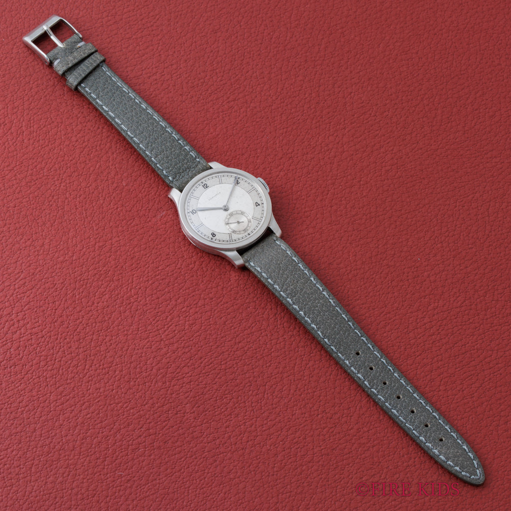 ロンジン シルバーセクターダイヤル 1937年製 Cal.12.68Z 手巻きです。ロンジンの自社ムーブメントで名高いCal.12.68Z搭載の一本です。ダイヤルデザインも秀逸でシルバーカラーのセクターダイヤルは経年は見受けられますがこの年代としては綺麗です。針の形状も立体感があってカッコいいです。社外の革ベルトを合わせています。