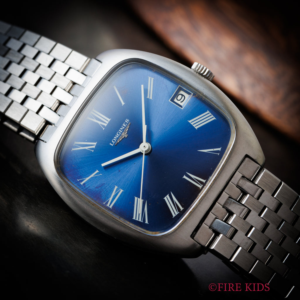 ロンジン トノーケース ブルーローマンダイヤル 純正ブレス付き ハイビート手巻き Cal.6952 ゼロハック機能