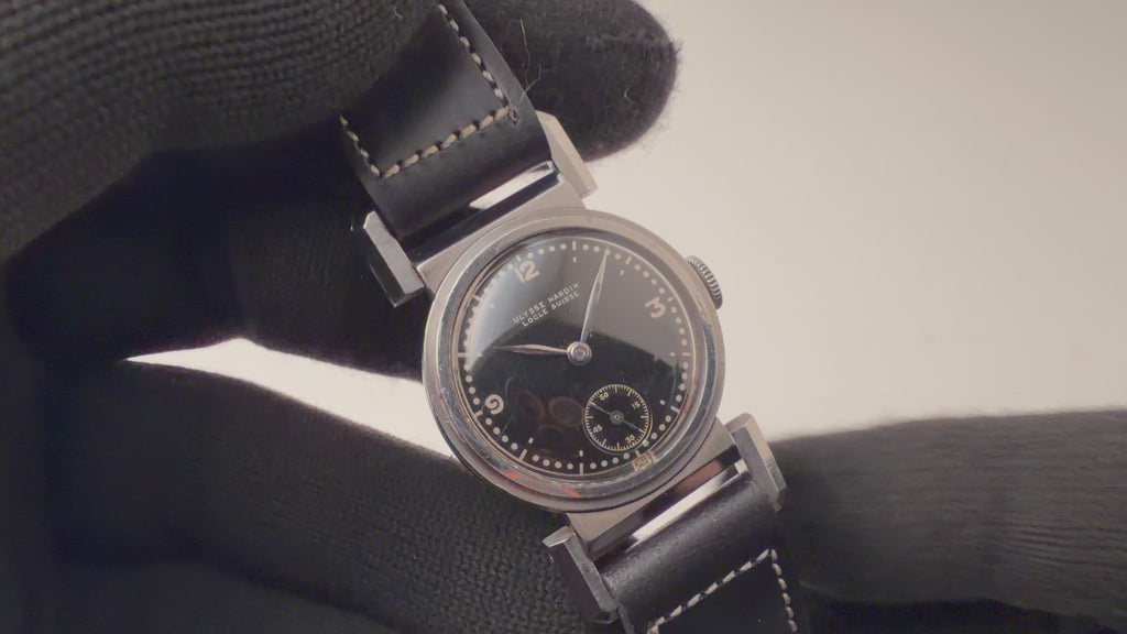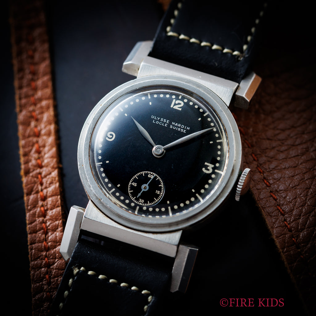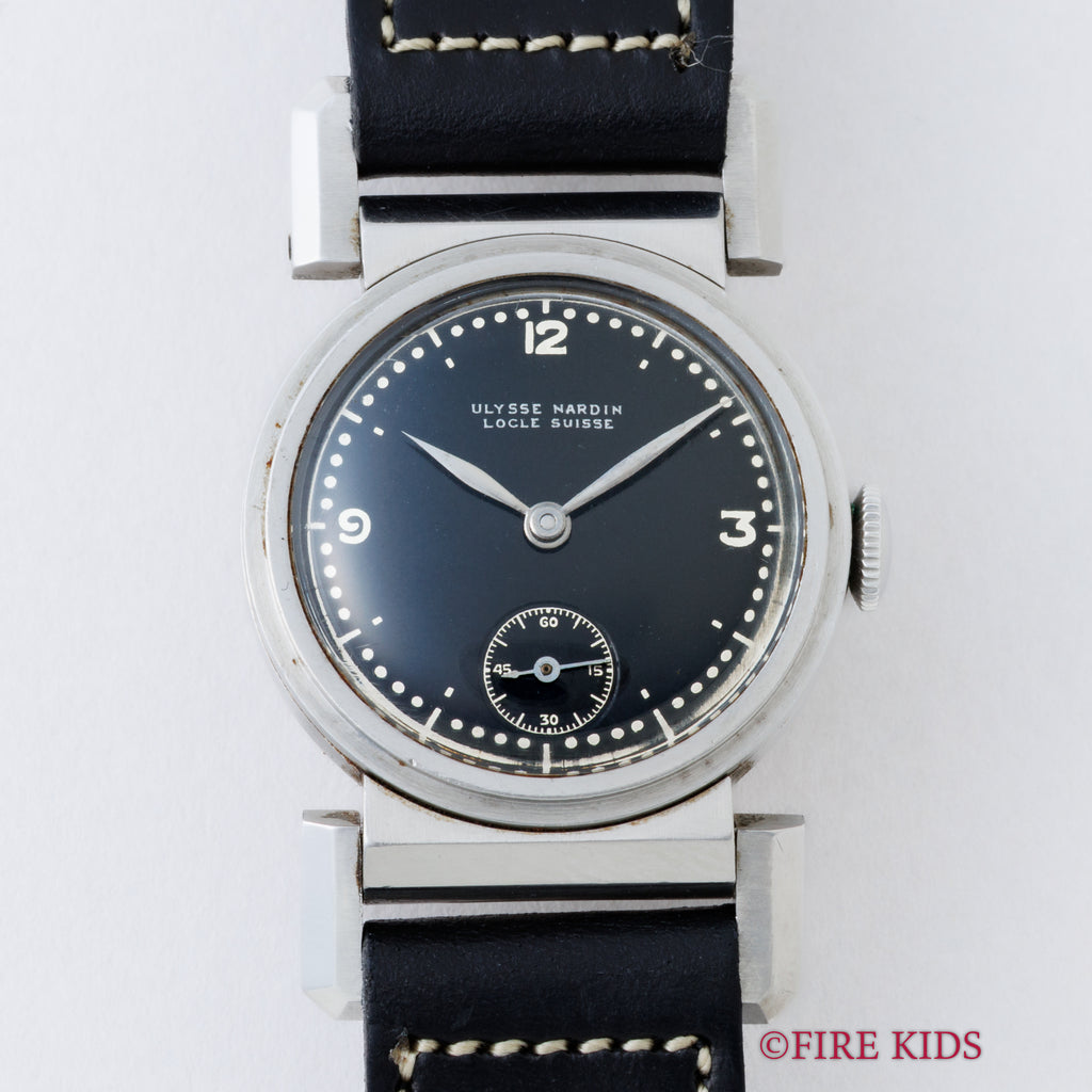 ユリスナルダン 1930年代製 フレキシブルラグ ブラックミラーダイヤル 手巻き
