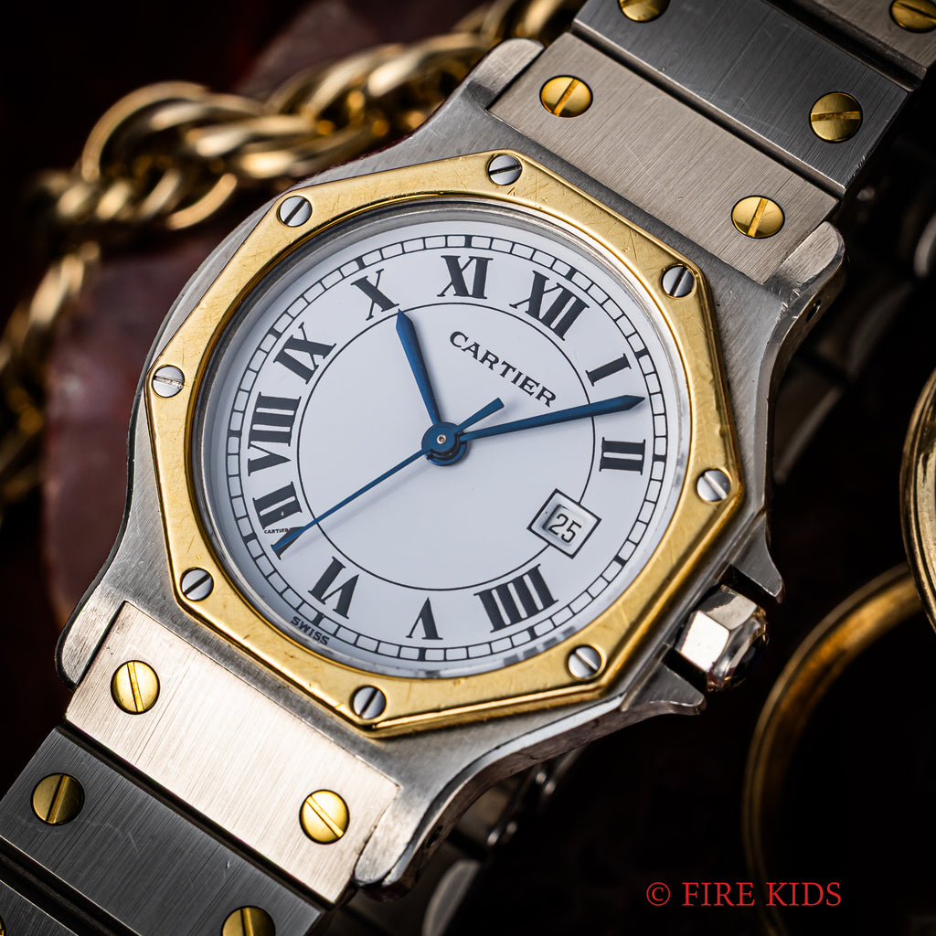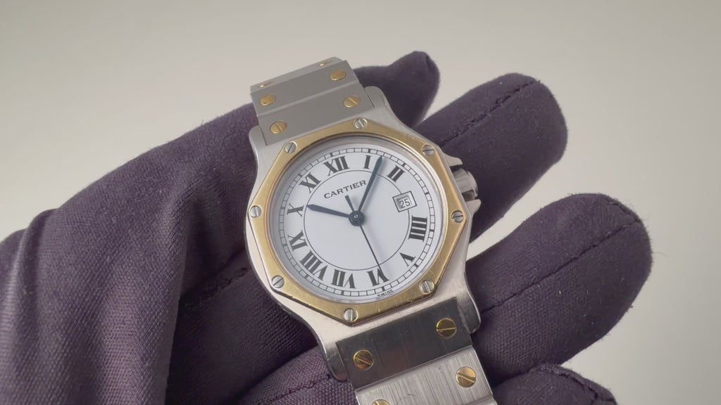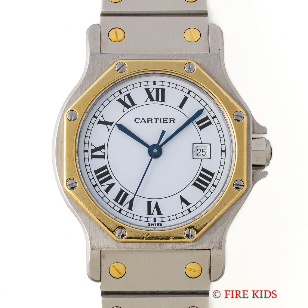 カルティエ サントスオクタゴン LMサイズ 1980年代製 自動巻 コンビ 純正ブレス