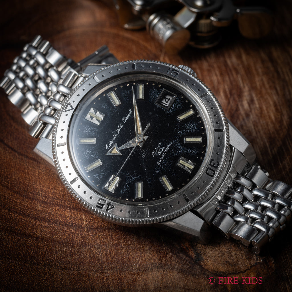 オリエント カレンダーオートオリエント 1960年代製 ダイバーズウォッチ 自動巻き アローハンド 純正ブレス付き