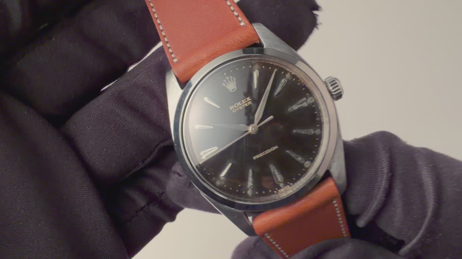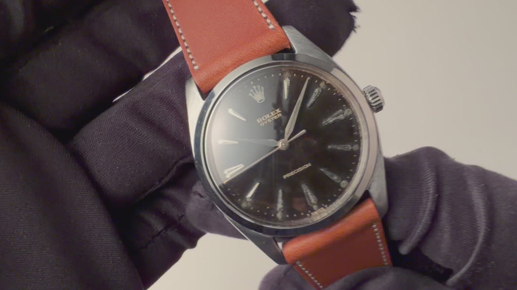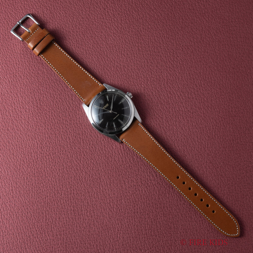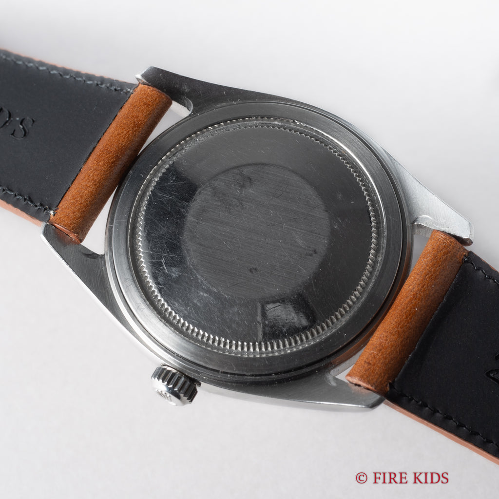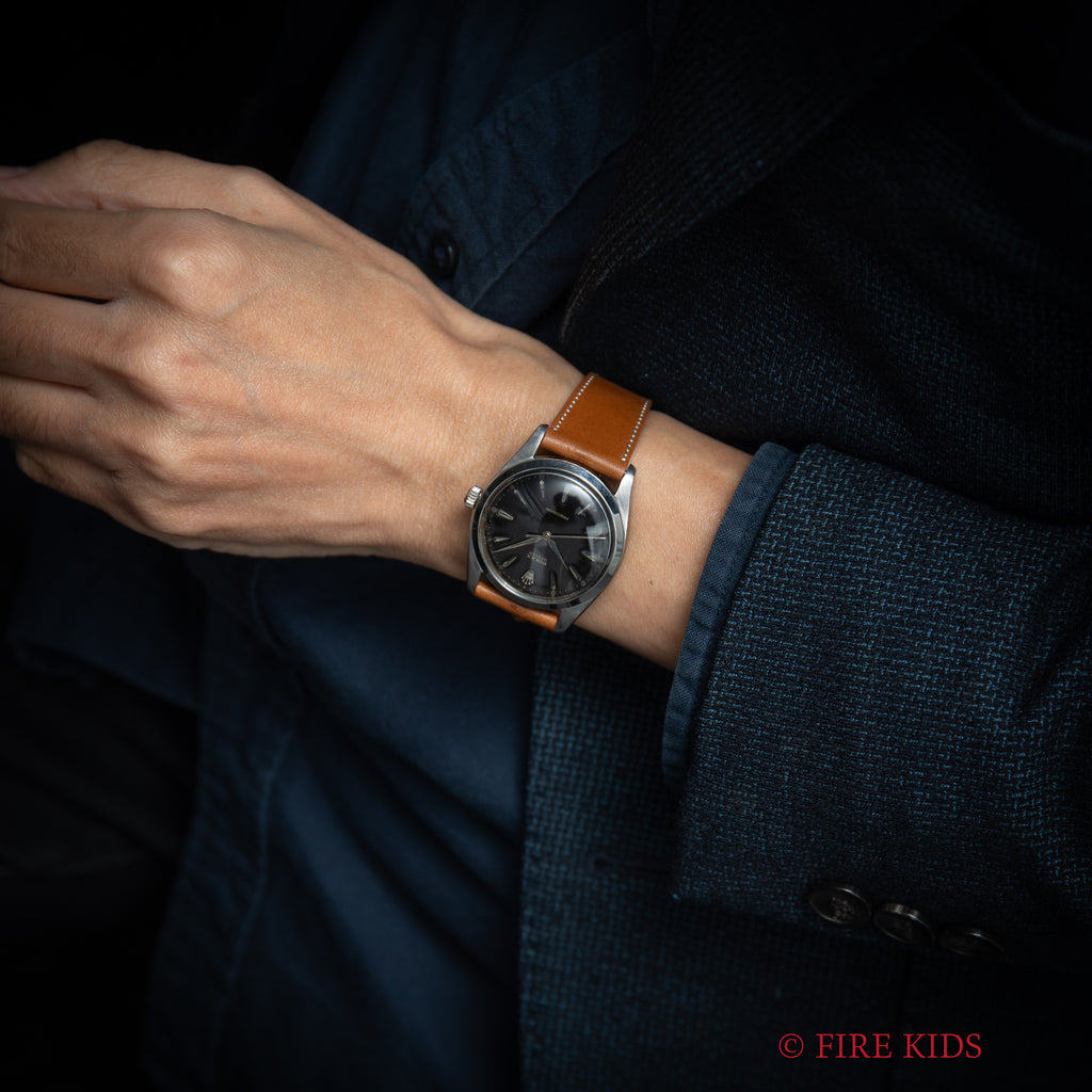 ロレックス ビッグオイスター Ref.6424 ブラックギルト 1964年製です。珍しい36mmケースのビッグオイスターのブラックギルトです。経年は多少ありますが、艶感がしっかり残った良い雰囲気です。ケースは小傷はあります。ファイアーキッズオリジナルのブッテーロ革ベルトを合わせています。