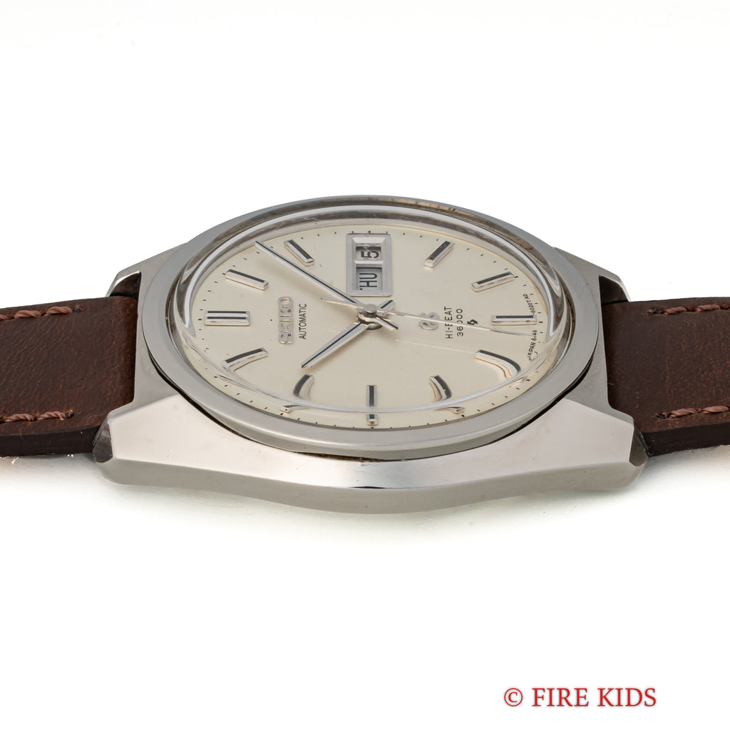 グランドセイコー ハイビート 36000 1969年製 Ref.6146-8000 61GS 10振動自動巻の入荷になります。10振動36000の自動巻きムーブメントを搭載したグランドセイコーで、セイコースタイルと呼ばれる独自デザインのケースも魅力的です。文字盤は薄いシミはありますが全体的には綺麗です。ケースも小キズが見られますが大きなダメージ無く良い状態で、裏蓋メダリオンもしっかり残っています。ムーブメントはCal.6146Aを搭載、手巻きや針回しの操作はスムースです。ベルトはファイアーキッズオリジナルのイタリアンレザーのブッテーロ(裏面ラバー)が取り付けられています。