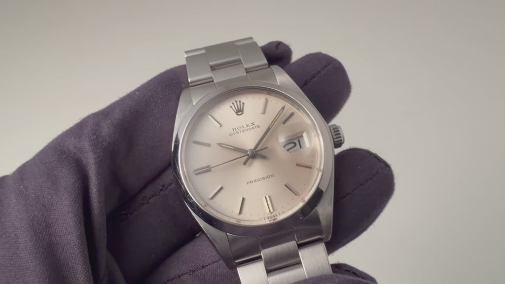 ロレックス オイスターデイト 1971年製 Ref.6694  手巻 純正巻きブレス付きです。ダイヤルはシルバーでシンプルで使いやすい一本です。ケースも小傷はありますが特筆すべきダメージはありません。ケース径34mmのサイズ感はご使用シーンや男女問わずお使い頂ける万能性があります。手巻きや針回しはスムーズです。ベルトは純正ブレスが付いています。
