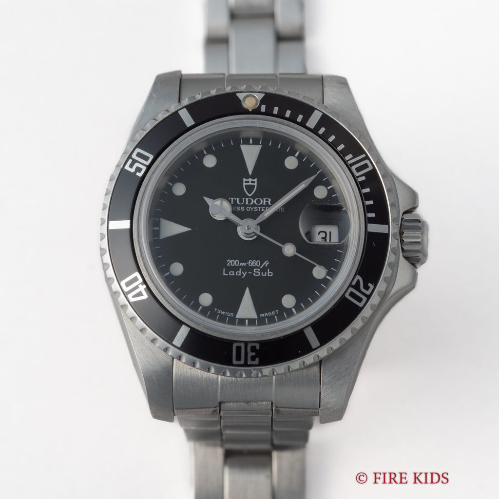 チューダー レディサブ 1992年製 プリンセスオイスターデイト Ref.96090 王冠リューズ 3連オイスターブレスの入荷になります。26㎜(リューズ別)サイズのオイスターケースに王冠リューズでロレックスにはないレディースのサブは魅力的です。文字盤、ケース共に気になるダメージのない良好な状態です。ムーブメントはCal.2671を搭載、手巻きや針回し、リューズのねじ込みの操作はスムースです。ブレスは純正ステンレスが取り付けられています。