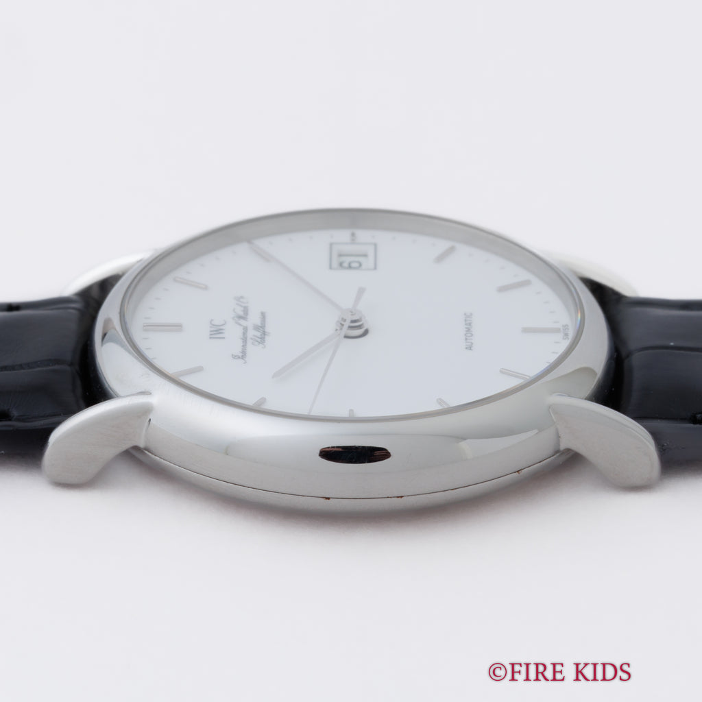 IWC ポートフィノ 1991年製 自動巻 ホワイトダイヤル 純正尾錠の入荷になります。艶やかな白文字盤が上品な印象のモデルです。IWC表記と筆記体でインターナショナルウォッチカンパニー表記の入る人気仕様です。艶やかなホワイトダイヤルはダメージを感じない良好なコンディションで、ケースも小傷はありますが大きなダメージはありません。リューズはお魚です。手巻きや針回しはスムーズです。メンテナンス性も良くおススメのモデルです。ベルトはファイアーキッズオリジナルクロコダイルの革ベルトに純正尾錠を合わせています。