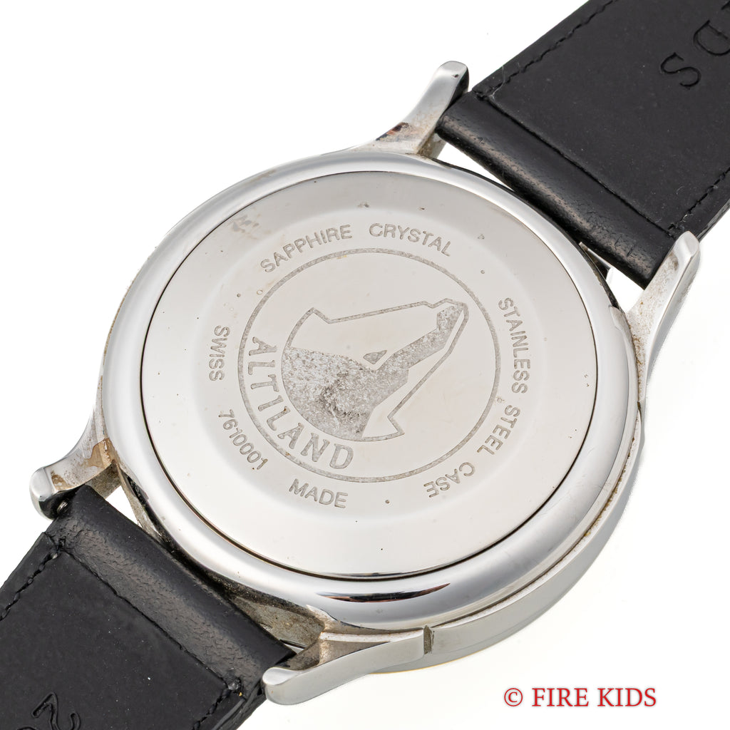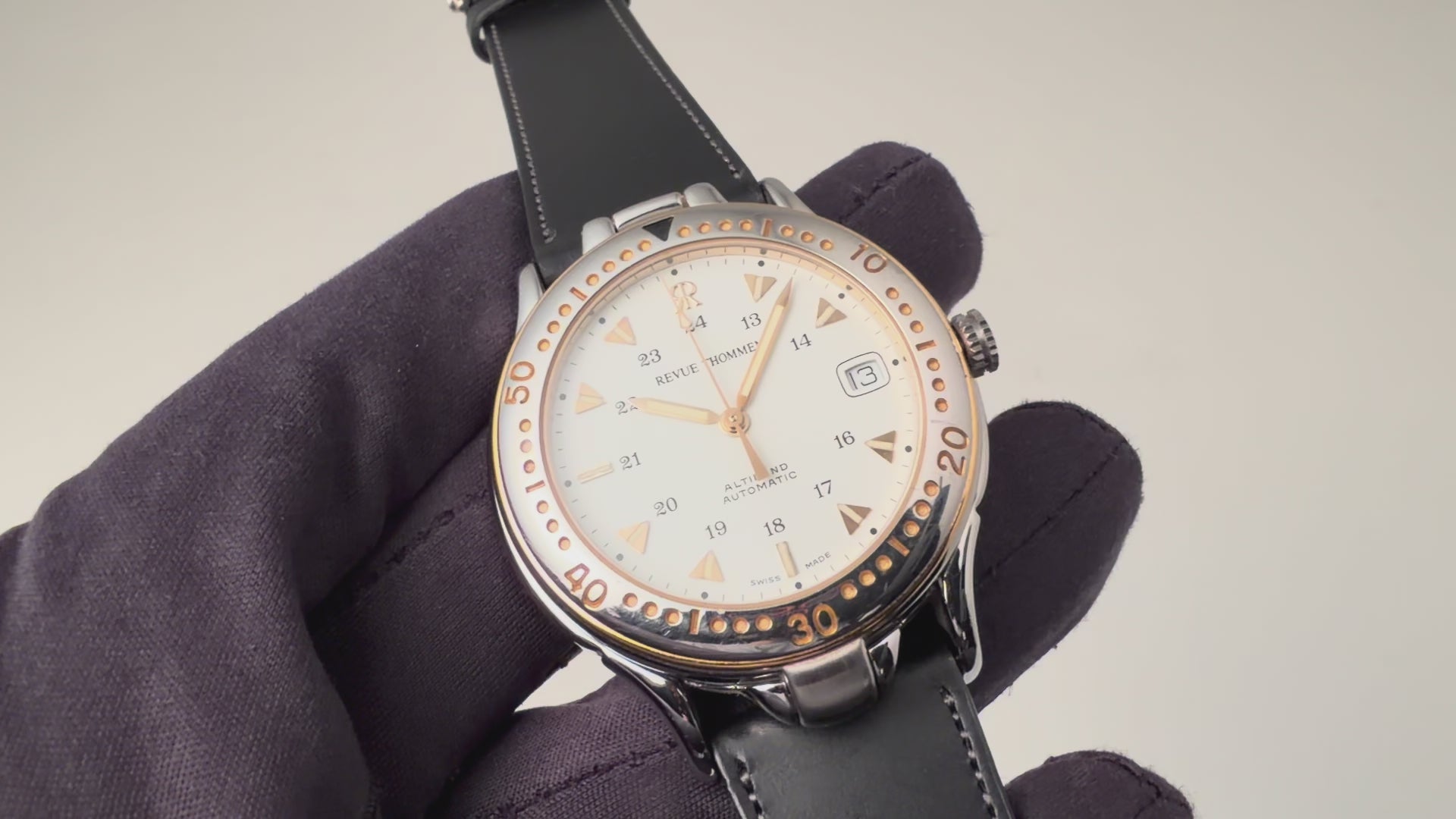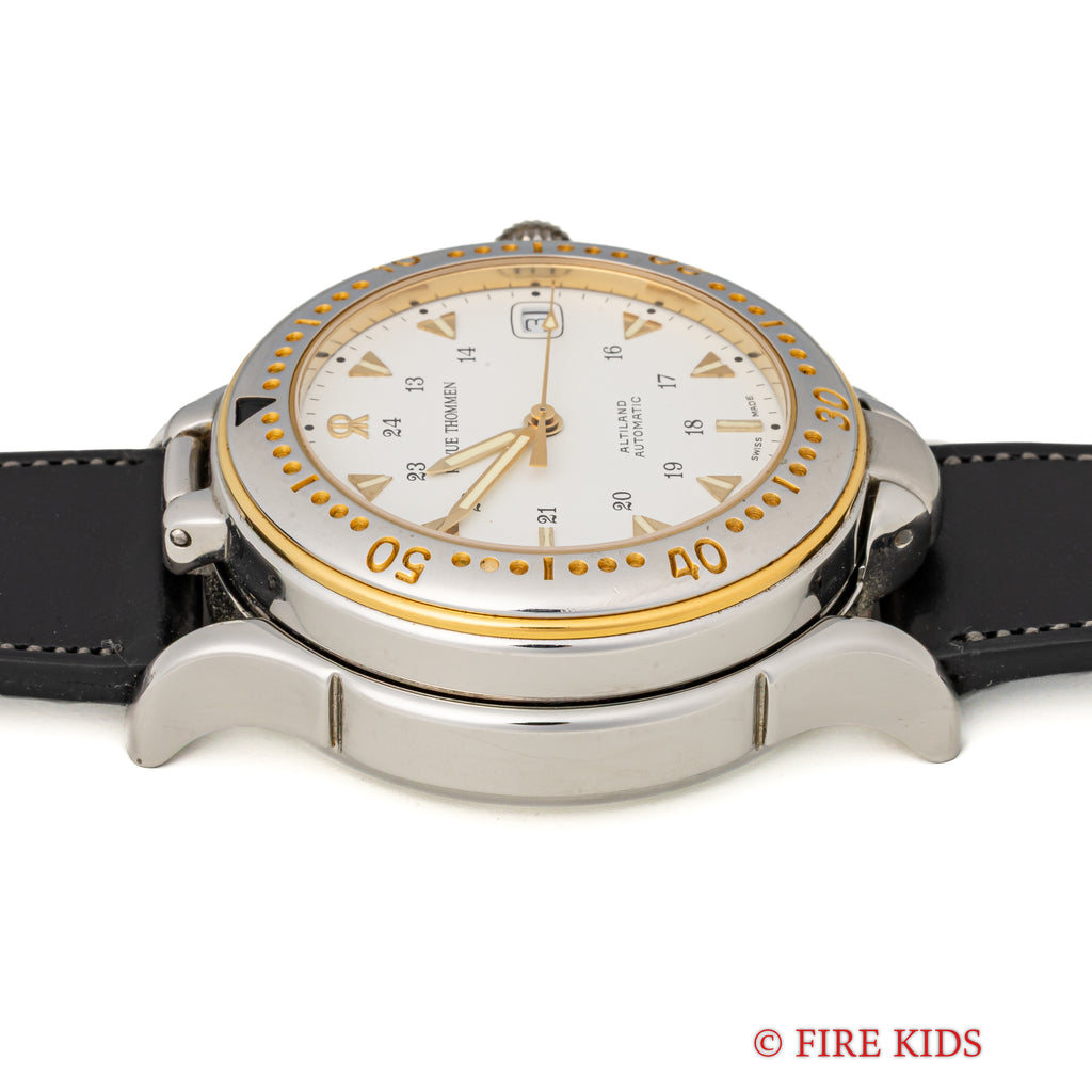 レビュートーメン アルティランド 1990年代製 自動巻 コンパス 高度計付きフィールドウオッチの入荷になります。自動巻腕時計の下にコンパスと高度計を装備したアウトドア用のフィールドウオッチです。時計裏面は鏡面加工されたミラーになっています。使用感が少ないオリジナル革ベルトが付属します。手巻きや針回しの操作はスムースです。ムーブメントはETAの2892A2を搭載しています。ベルトはファイアーキッズオリジナル、イタリアンレザーのブッテーロ(裏面ラバー)に純正尾錠が取り付けられています。