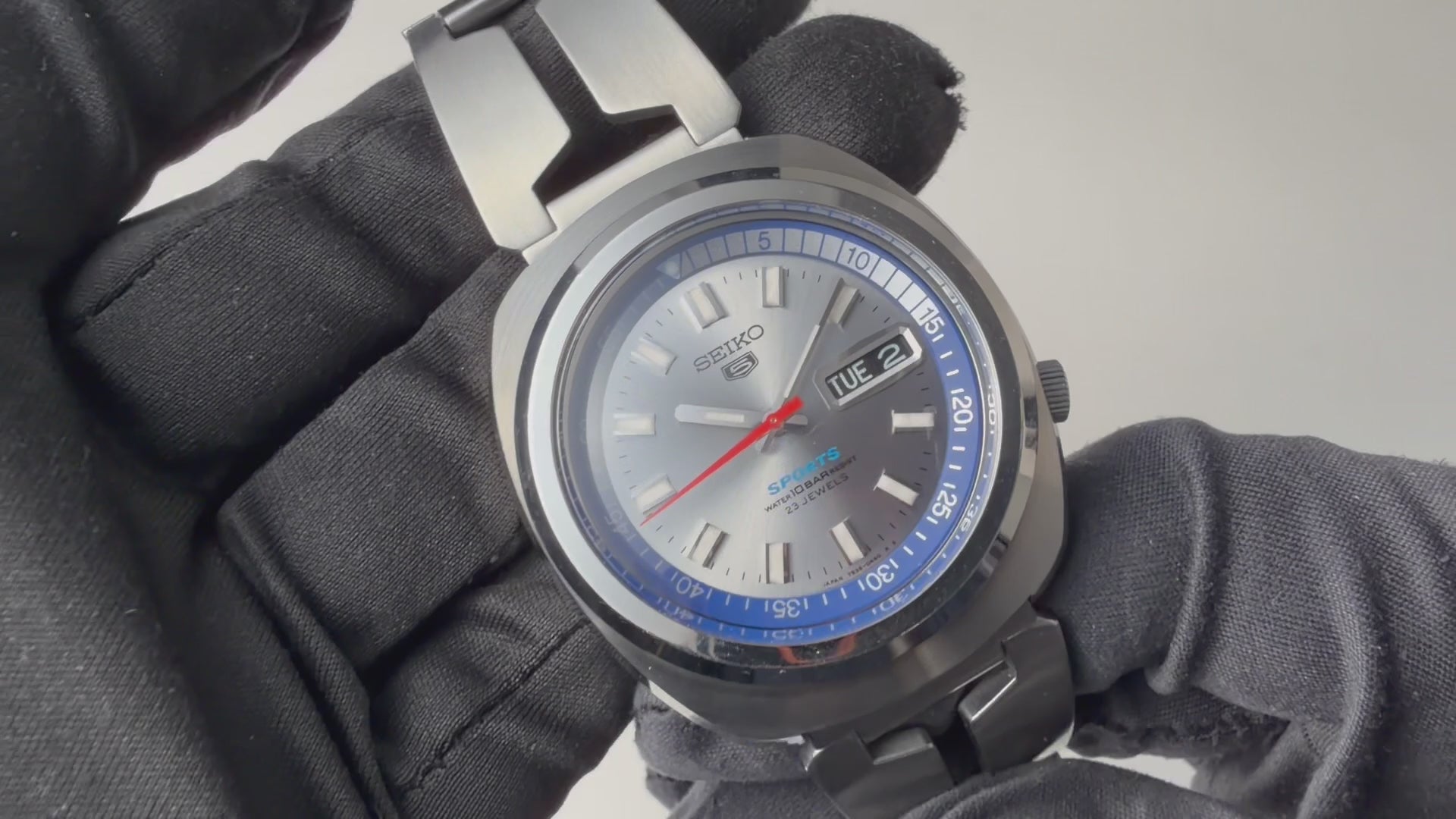 セイコー 5スポーツ Ref.7S36-0050 1997年製 Cal.7S36A 自動巻き 復刻モデルです。1960年代後半から1970年代のモデルを忠実に再現した復刻モデルです。レトロな雰囲気を持つポップなデザインと、信頼性の高い日本製ムーブメントの組み合わせが特徴で、時計愛好家の間で人気があります。 大きなダメージ無く美品です。純正ブレス付きです。