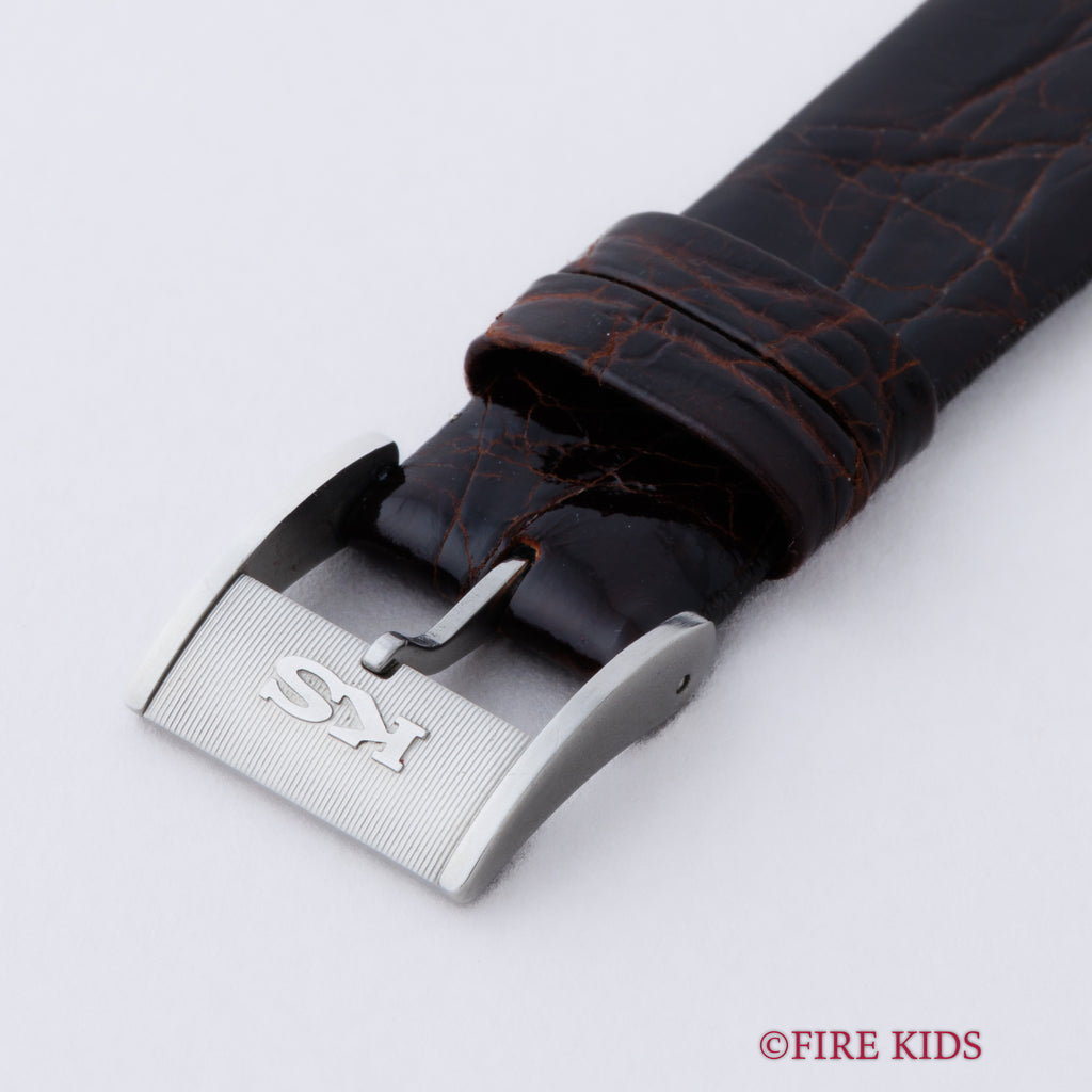 キングセイコー 1971年製 Ref.5626-7110 56KS ハイビート自動巻きです。こちらは前期型でケースがワンピースケースになっているタイプで、少々小傷はございますが裏のメダリオンもキレイに残っています。ムーブメントはハイビートにハック機能(秒針規制)とカレンダー早送りを備えた5626を搭載。手巻きや針回しの操作はスムースです。ベルトは社外の川ベルトが取り付けられています。