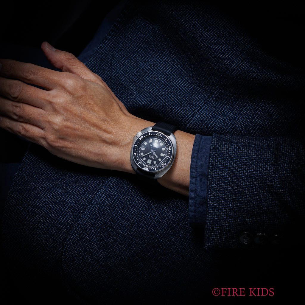 セイコー 150mダイバー 2nd後期 植村ダイバー 1975年製 自動巻き Ref.6105-8110の入荷になります。冒険家として著名な植村直己さんの着用モデルとして有名なセイコー 150mダイバー2nd後期 通称「ウエムラダイバー」です。冒険家の方が愛用するだけあり当時のハイスペック時計、防水性の高さ、頑丈さに定評のある時計です。映画『地獄の黙示録(Apocalypse Now)』でマーティン・シーン演じるウィラード大尉が着用したことから、通称「ウィラード」とも呼ばれています。ダイヤルや夜光が経年しているものが多い中こちらはケース、ベゼルにいたっても大きなダメージなく綺麗な個体です。リューズの簡易ロックもしっかり効きます。手巻き機能は無く自動巻きのみで、日付早送りとハック付きのCal.6105Bを搭載しています。ベルトは社外のウレタンベルトが取り付けられています。