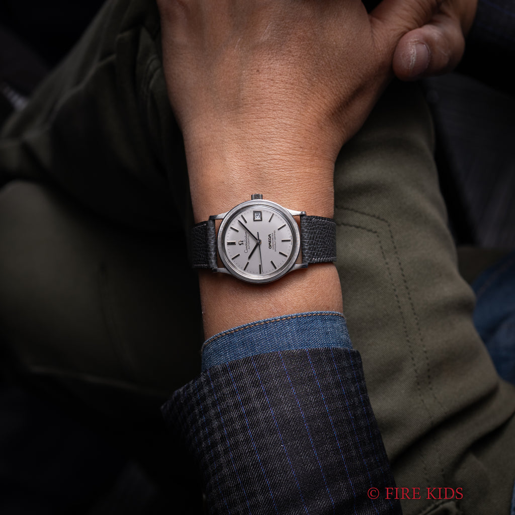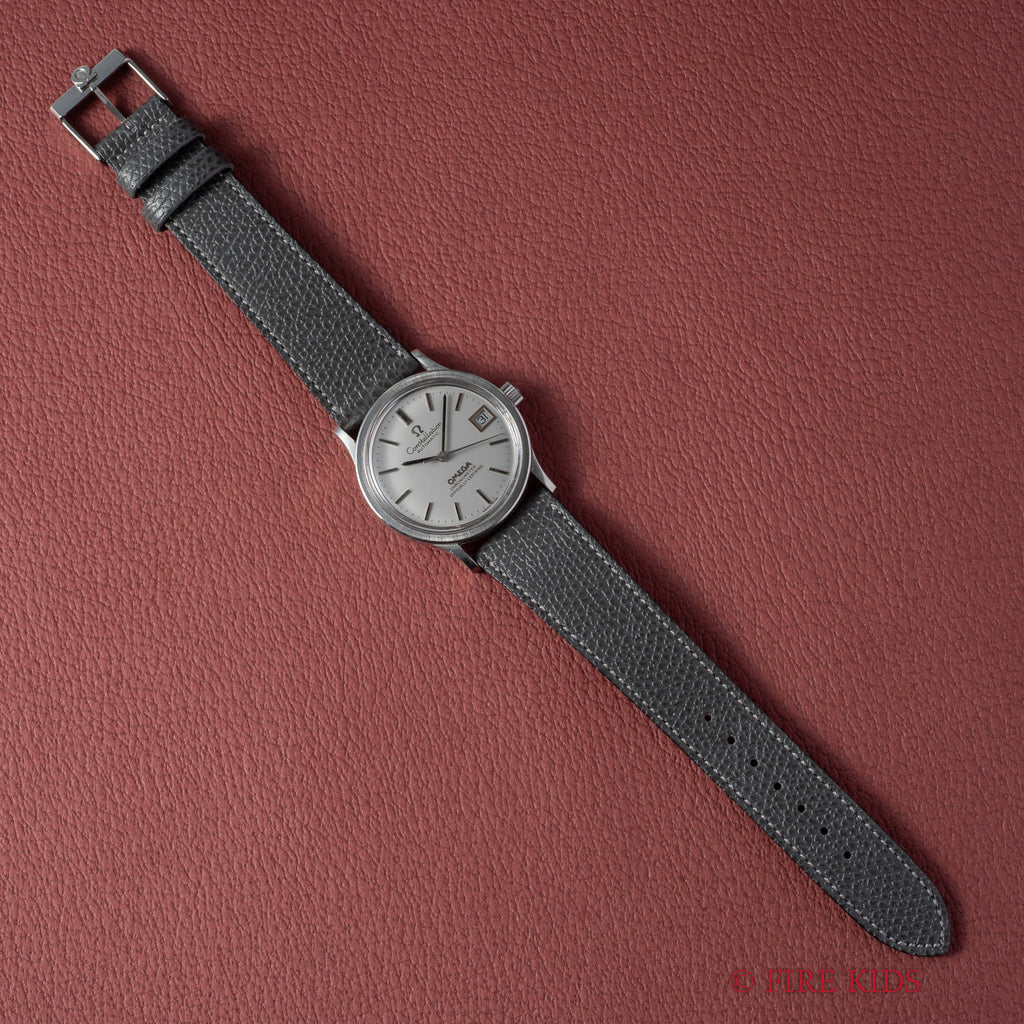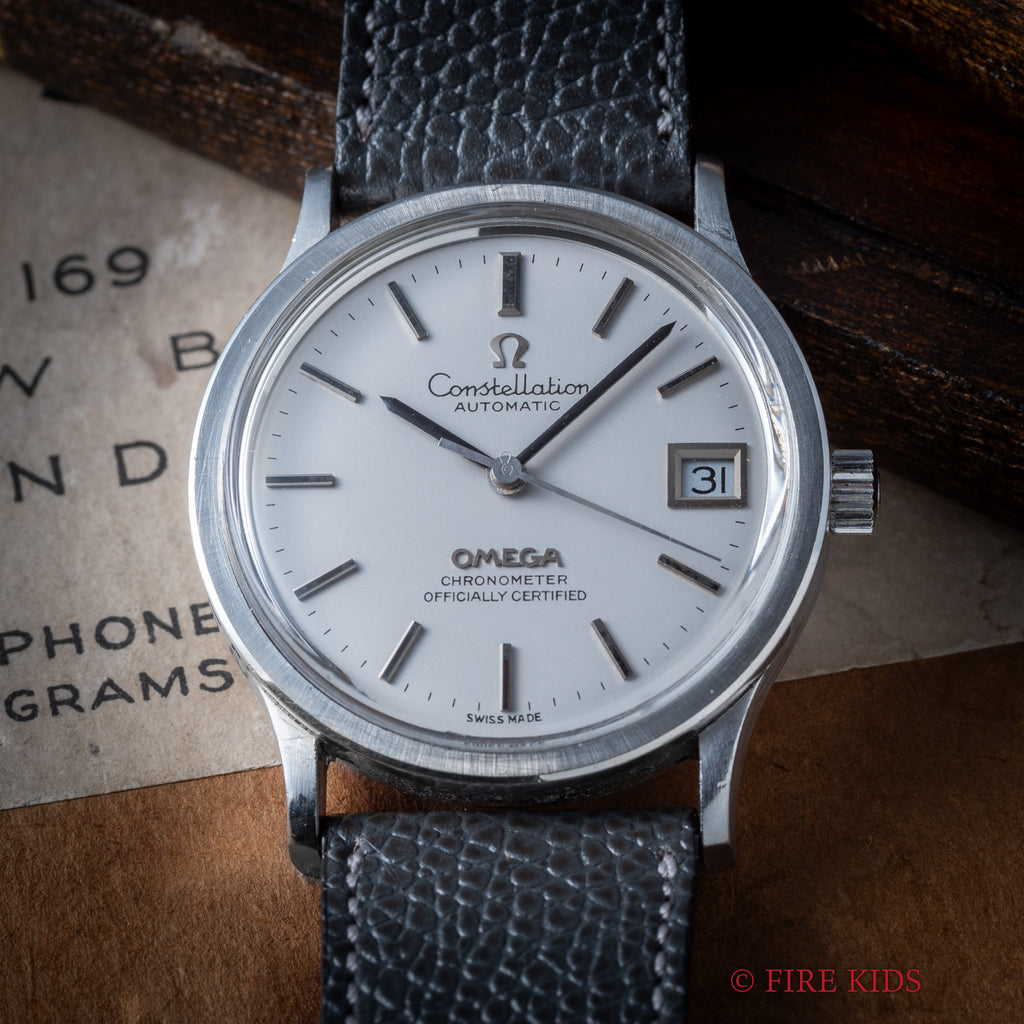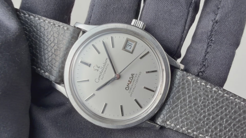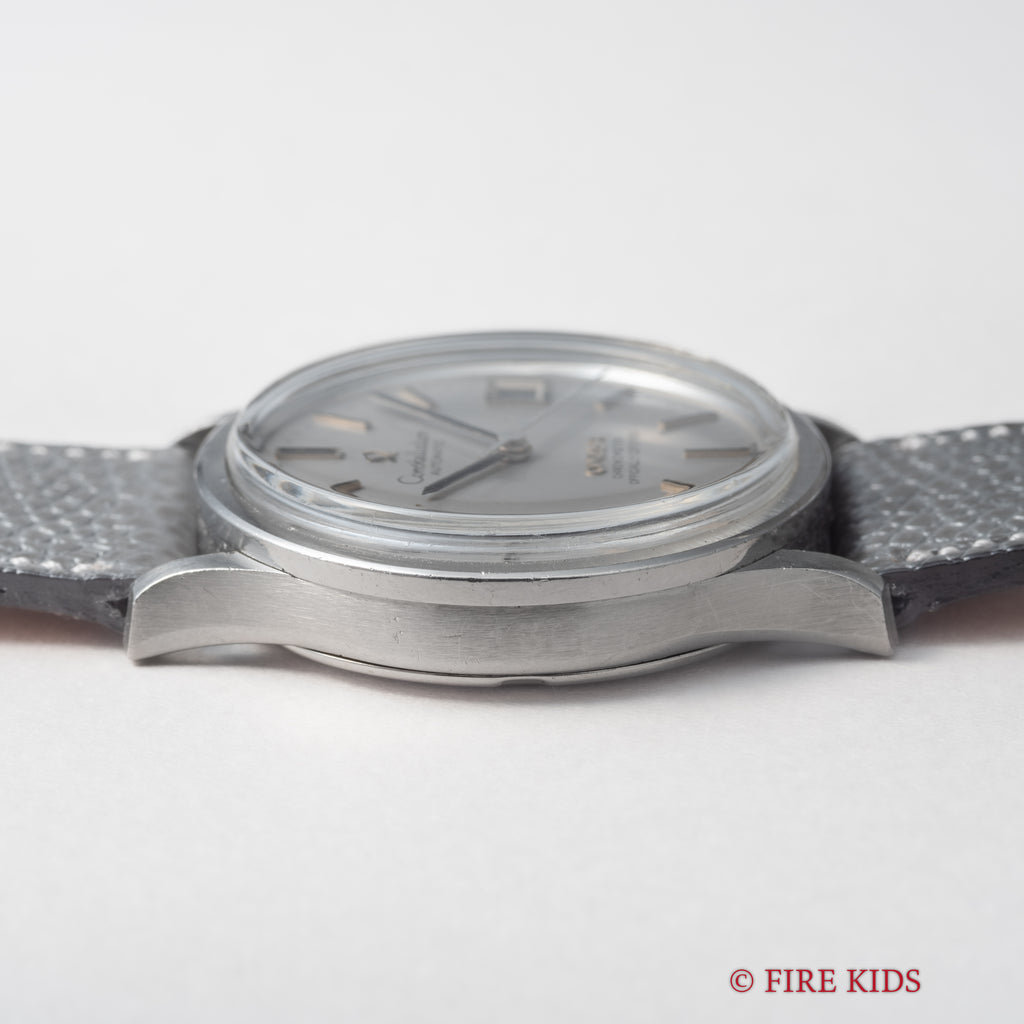 1971年製のオメガコンステレーションです。シンプルなラウンドケースにグレーのダイヤルは飽きのこないシンプルなデザインです。オメガの文字もアプライドになっていて通常12時位置にあるものが6時位置になっているなど一線を画す仕様になっています。ムーブメントは薄型高振動を実現したCal.1001を搭載しており、巻き上げはスムーズです。ベルトは社外の革ベルトに純正尾錠付きです。
