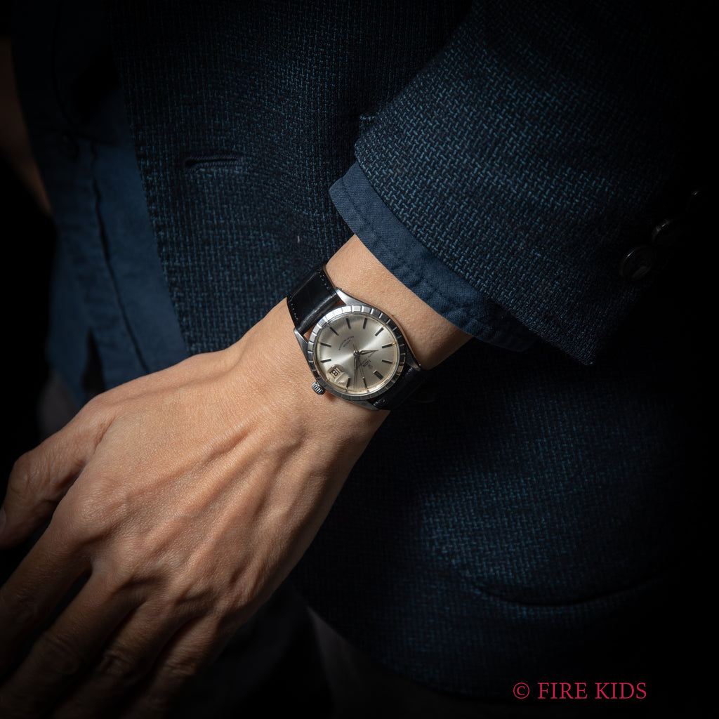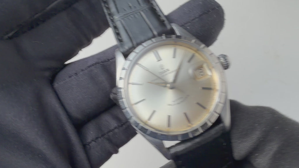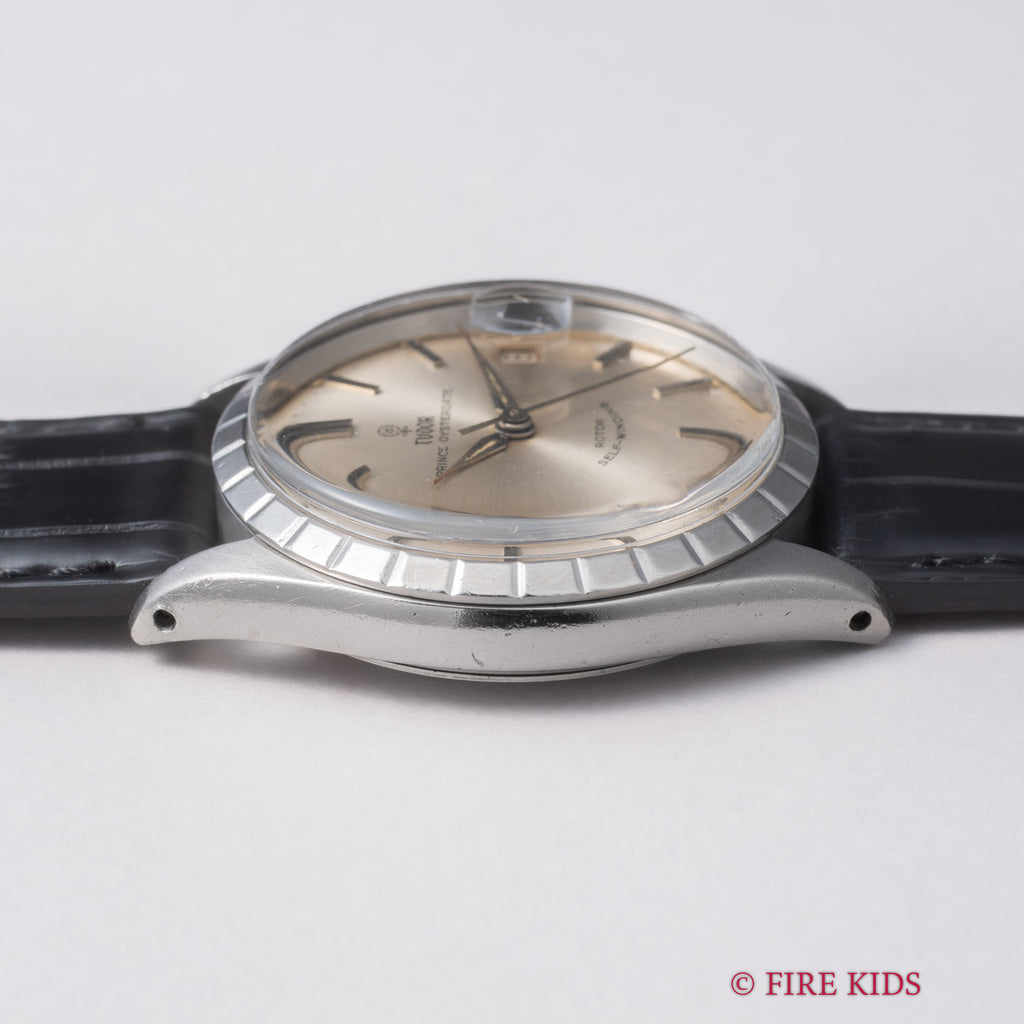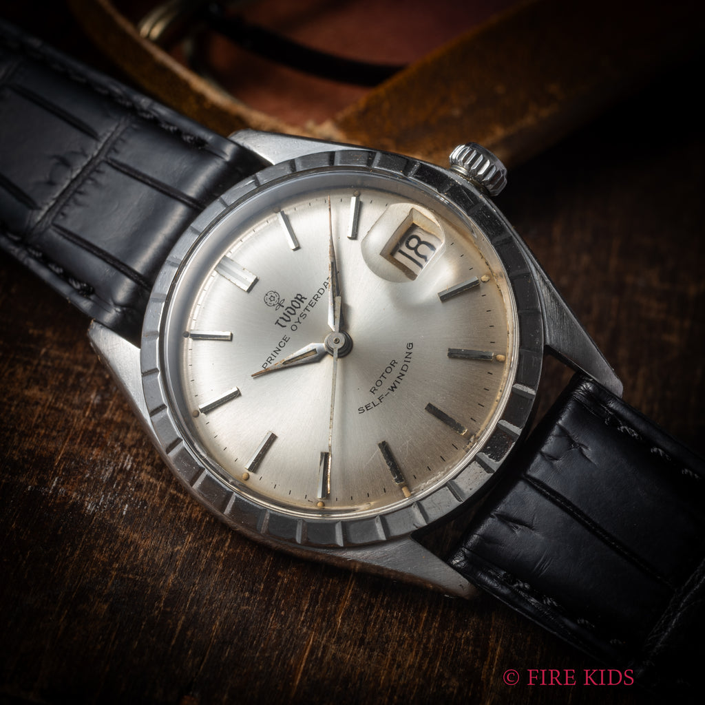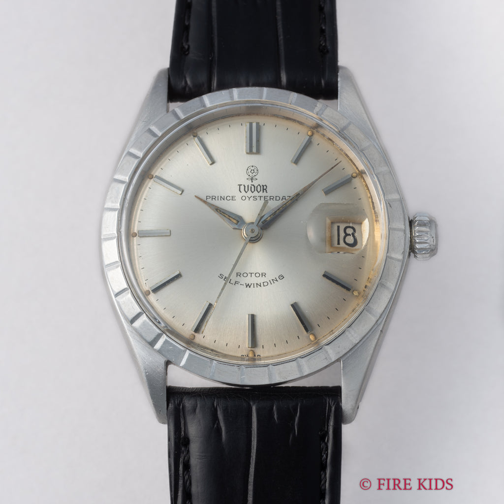 チューダー 小薔薇プリンスオイスターデイト 1967年製 自動巻です。34㎜(リューズ別)サイズの使い易いサイズ感でこの年代の一部モデルに見られる独自のベゼルが付いたユニークなモデルです。小薔薇のロゴが魅力的で文字盤も全体的に良い雰囲気です。ケースは小傷が見られますが大きなダメージはありません。ムーブメントは自動巻のCal.2462を搭載しています。ベルトはファイアーキッズオリジナルクロコ革ベルトが取り付けられています。