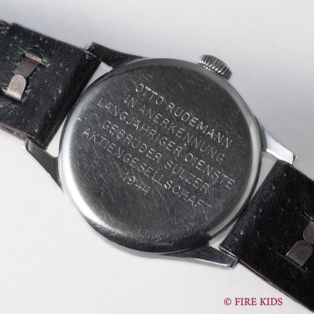 IWC アラビアダイヤル 1945年製 手巻 Cal.83 ラウンドケースの入荷になります。名作キャリバー83を搭載した30㎜(リューズ別)サイズの1本です。文字盤は全体的にわずかに変色してヴィンテージらしい良い雰囲気になっています。ブルースチールのシリンジハンドは経年によりパープルに各所グラデーションになっています。裏蓋には当時の会社での功績を讃えるメッセージ刻印があります。