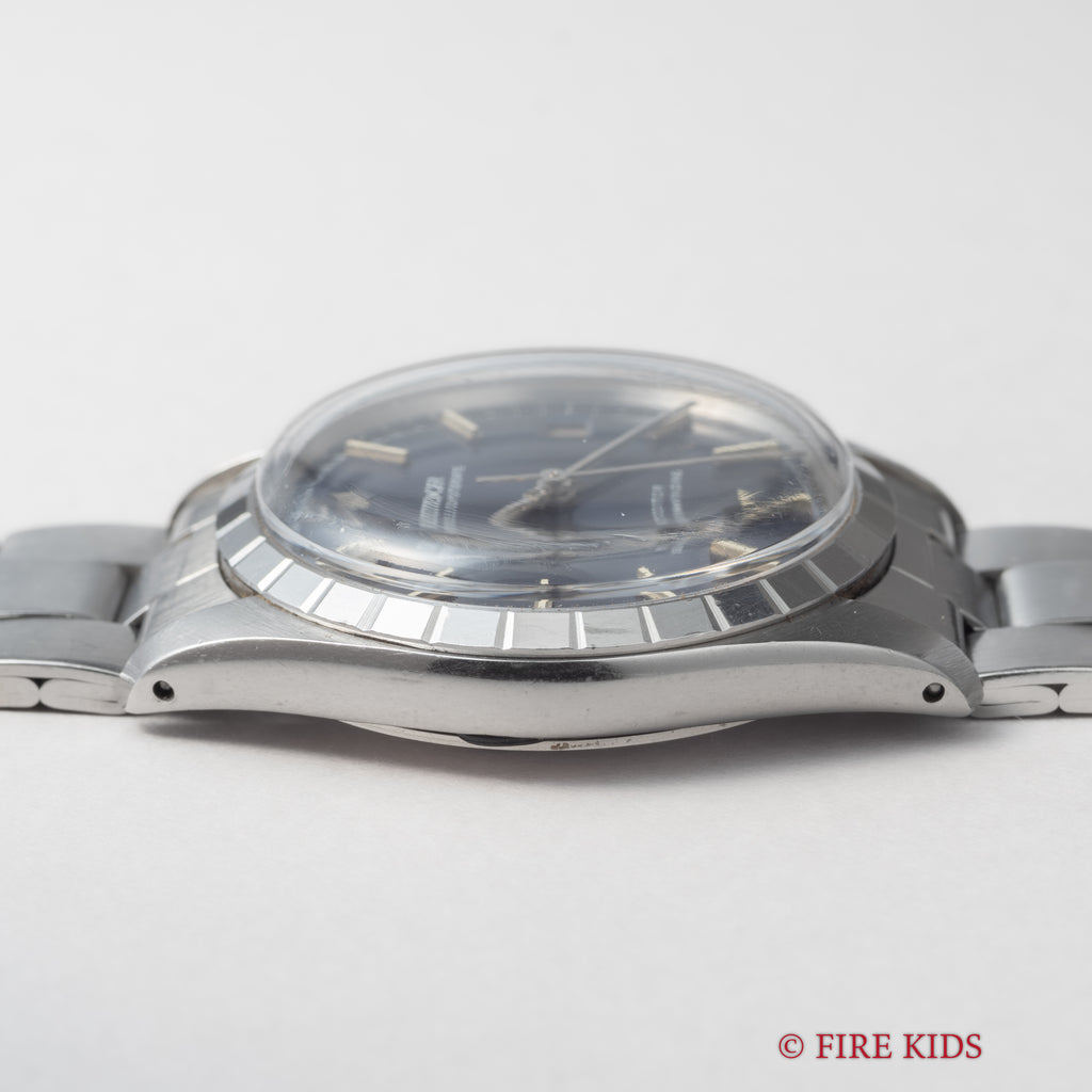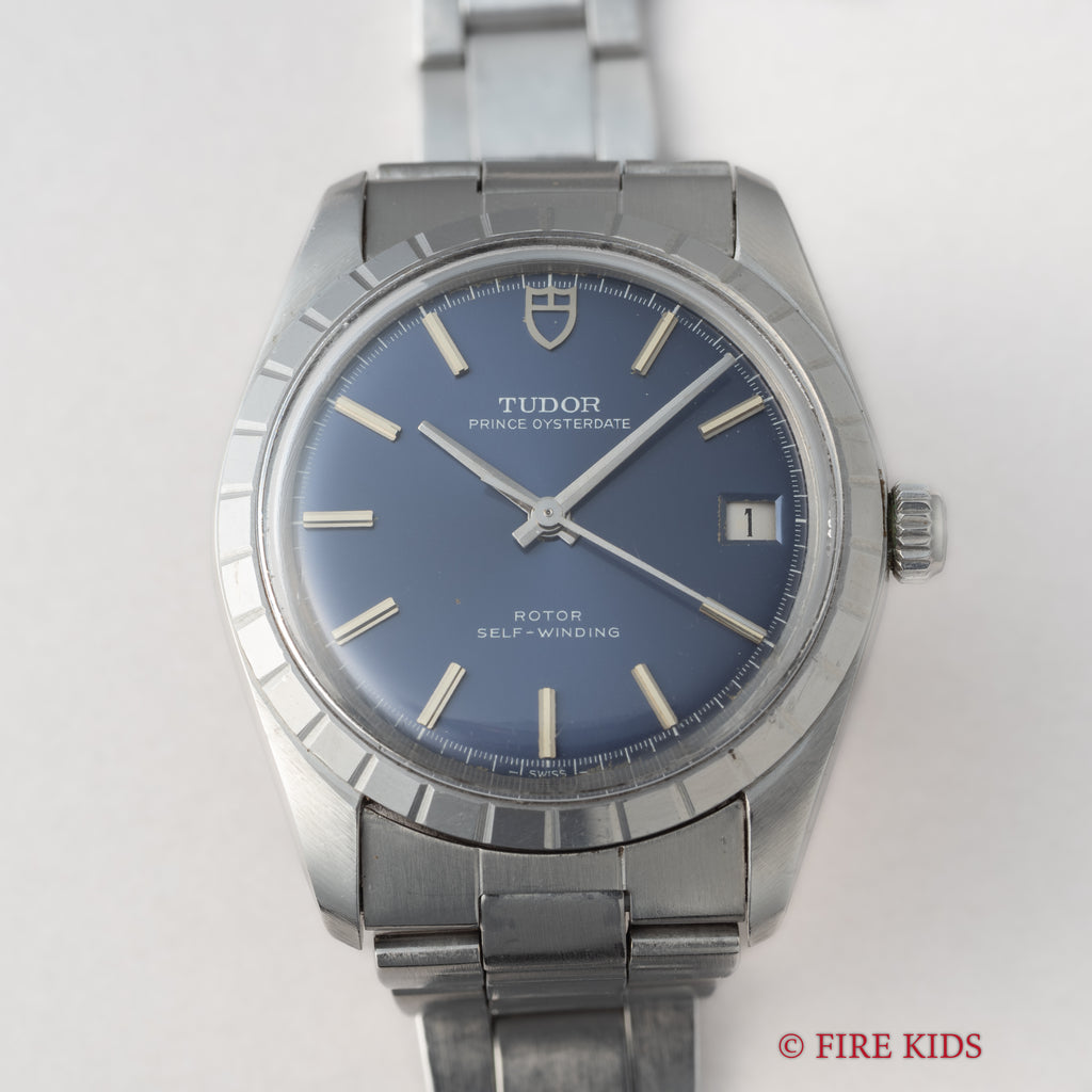 チューダー プリンスオイスターデイト ブルー 1968年製 自動巻きです。ロレックスには無いデザインが魅力の一つのチューダー。こちらもロレックスには無いタイプのベゼルに刻みの入ったデザインで、鮮やかなブルーダイヤルが目を惹きます。文字盤、ケースに大きなダメージは無く良好なコンディションです。ロレックス純正巻きブレス付きです。