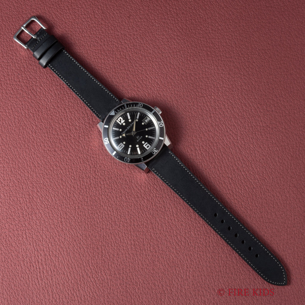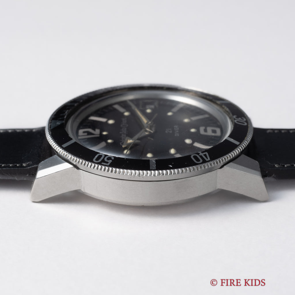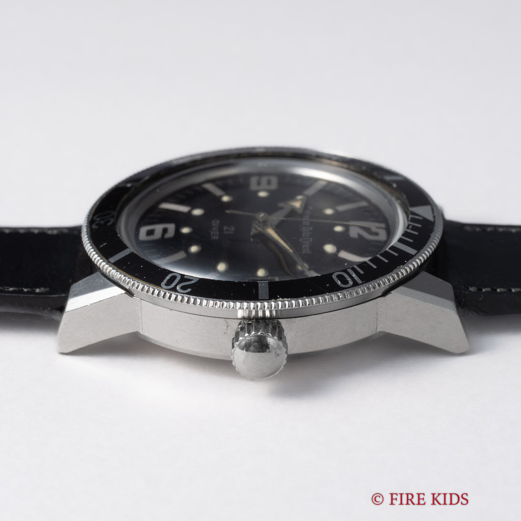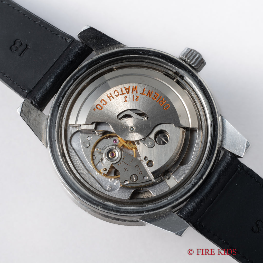 オリエント カレンダー オートオリエント 1960年代製 アローハンド 21ダイバー 自動巻きです。40mm径の迫力あるケースを搭載したヴィンテージオリエントの中でも人気のモデルです。21石を積んだムーブメントの為21ダイバーと呼ばれています。艶有のブラックダイヤルにアローハンドの組み合わせでカッコいいです。状態もダイバーとしてはかなり良く、文字盤もケースも整っています。ファイアーキッズオリジナルのブッテーロカーフレザーを合わせています。