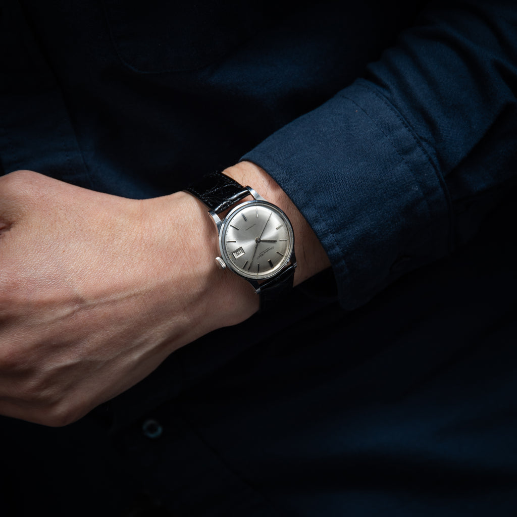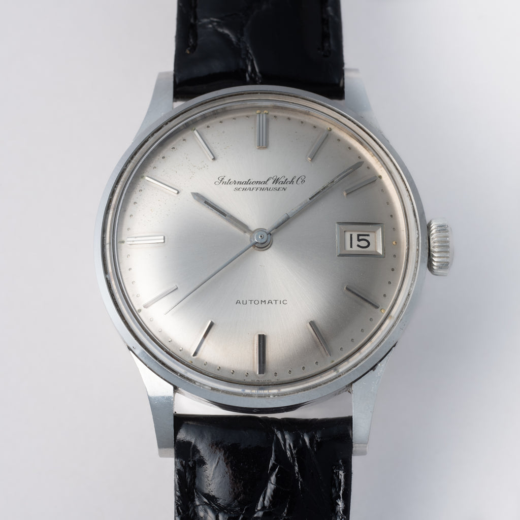 1963年製のIWC ラウンドケース Ref.809A ペラトン式自動巻き Cal.8541です。ペラトン式自動巻きの完成形Cal.8541を搭載したモデルでオールドインターらしいシンプルな質実剛健なモデルです。シンプルだからこそ造りの良さが感じられます。文字盤はダメージを感じない良好な状態で、ケースは小傷がありますが大きなダメージはありません。手巻きや針回しの操作はスムースです。ベルトは社外の革ベルトが取り付けてあります。