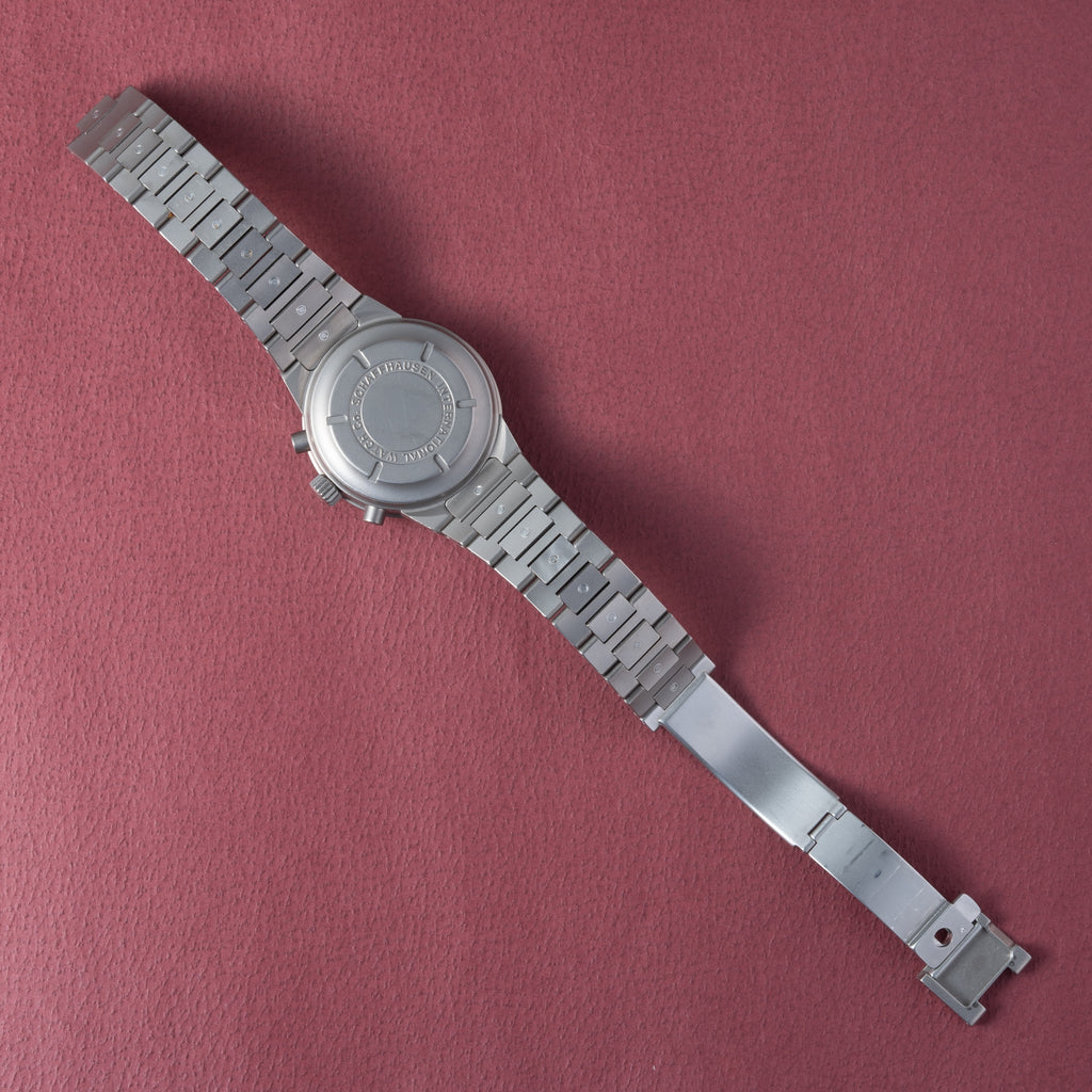 2000年製のIWC GSTクロノグラフ Ref.3707が入荷しました。GSTシリーズは1997年~2003年頃に発売されたされたG(ゴールド)S(ステンレス)T(チタン)素材を使用したモデルです。本個体はケース、ブレスともにチタン素材を採用した軽量モデルで、無骨な雰囲気のある一本となっています。ダイヤル、ケースともに多少の使用傷や経年はありますが大きなダメージはありません。ベルトは純正チタンブレスが付いています。