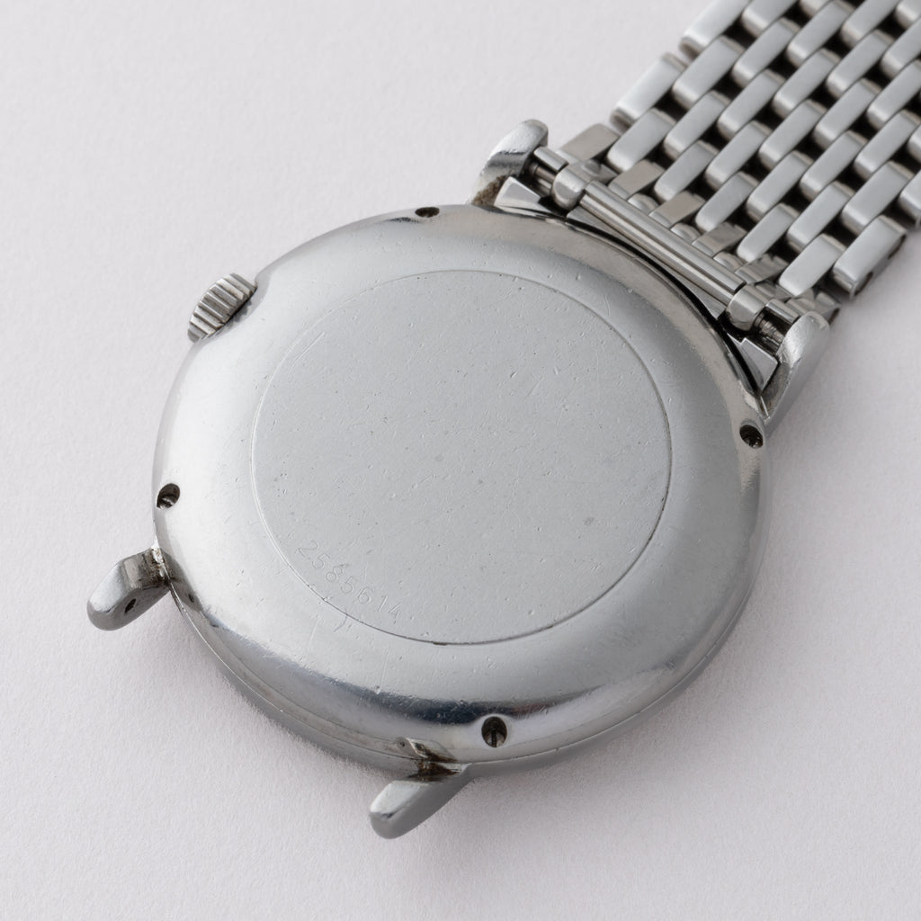 • ヴィンテージ時計の特性上、風防・パッキン・リューズ・バネ棒などの消耗部品は後年メンテナンス過程で交換されている場合がございます。オリジナル性を重視しておりますが、必要に応じて適切な部品にて調整されていますので、よりコレクション性重視のお求めのお客様は事前にご確認ください。