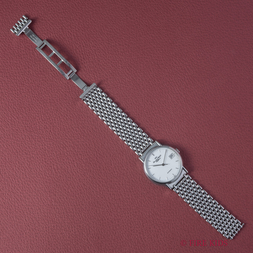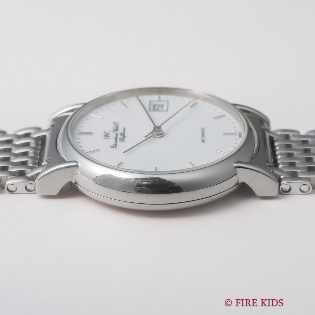 IWC ポートフィノ 2000年製(平成12年製)自動巻 ホワイトエナメルダイヤル 純正ブレス付きの入荷になります。インターの代表的なモデルであるポートフィノ、ラウンド状のステンレスケースに艶やかなエナメルホワイト文字盤が上品かつシンプルなデザインが魅力です。控え目なIWC表記に筆記体のインターナショナル ウオッチカンパニー表記も抜群の雰囲気です。ケースは小傷はございますが大きなダメージはございません。手巻きや針回しの操作はスムースです。ベルトは純正ステンレスブレスが取り付けてあります。こちらは分解掃除済みです。