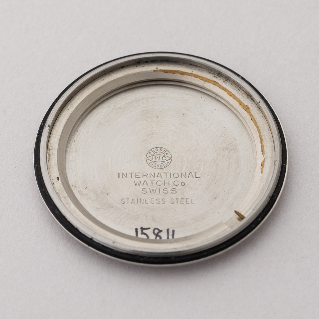 インターナショナルウォッチカンパニーの1971年製ヨットクラブです。シンプルながら当時としては防水構造のスポーツウォッチで、しっかりとした厚みがあり存在感があります。ムーブメントは自社キャリバーのペラトン式自動巻きのCal.8541Bを搭載しています。ケースは多少の使用感が見られますが大きなダメージはありません。手巻きや針回しの操作はスムースです。ベルトはファイアーキッズオリジナル革ベルトが取り付けてあります。